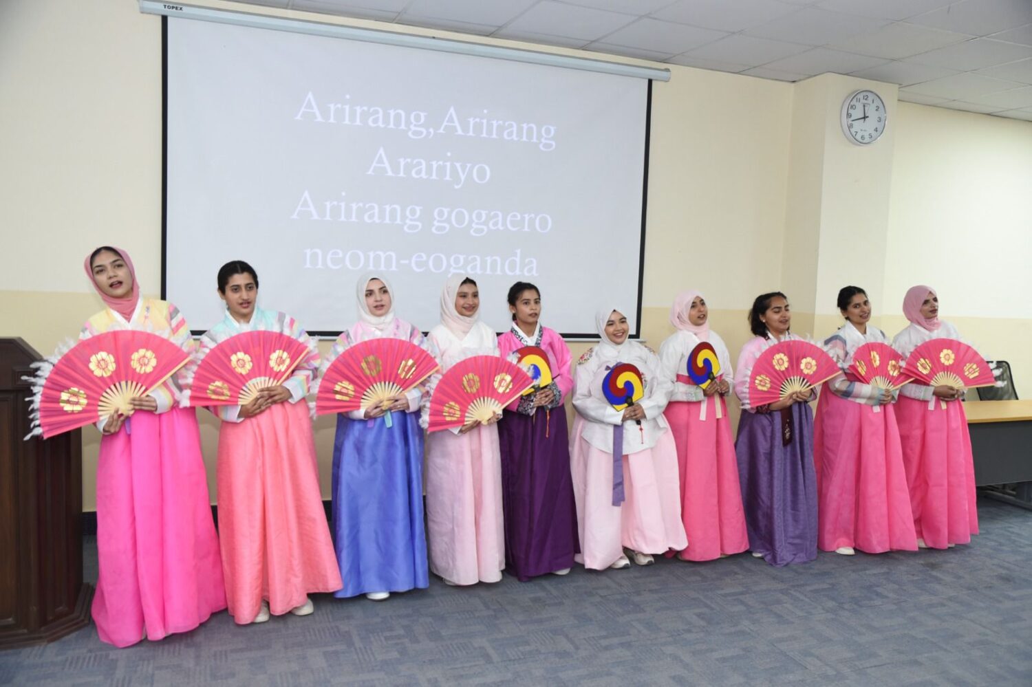 Later, the visiting delegation participated in a vibrant event showcasing Korean culture, organized by the Department of Korean Language and Culture at Iqbal Hall. Students presented colorful performances reflecting various aspects of Korean language and culture, which were highly appreciated by the guests.