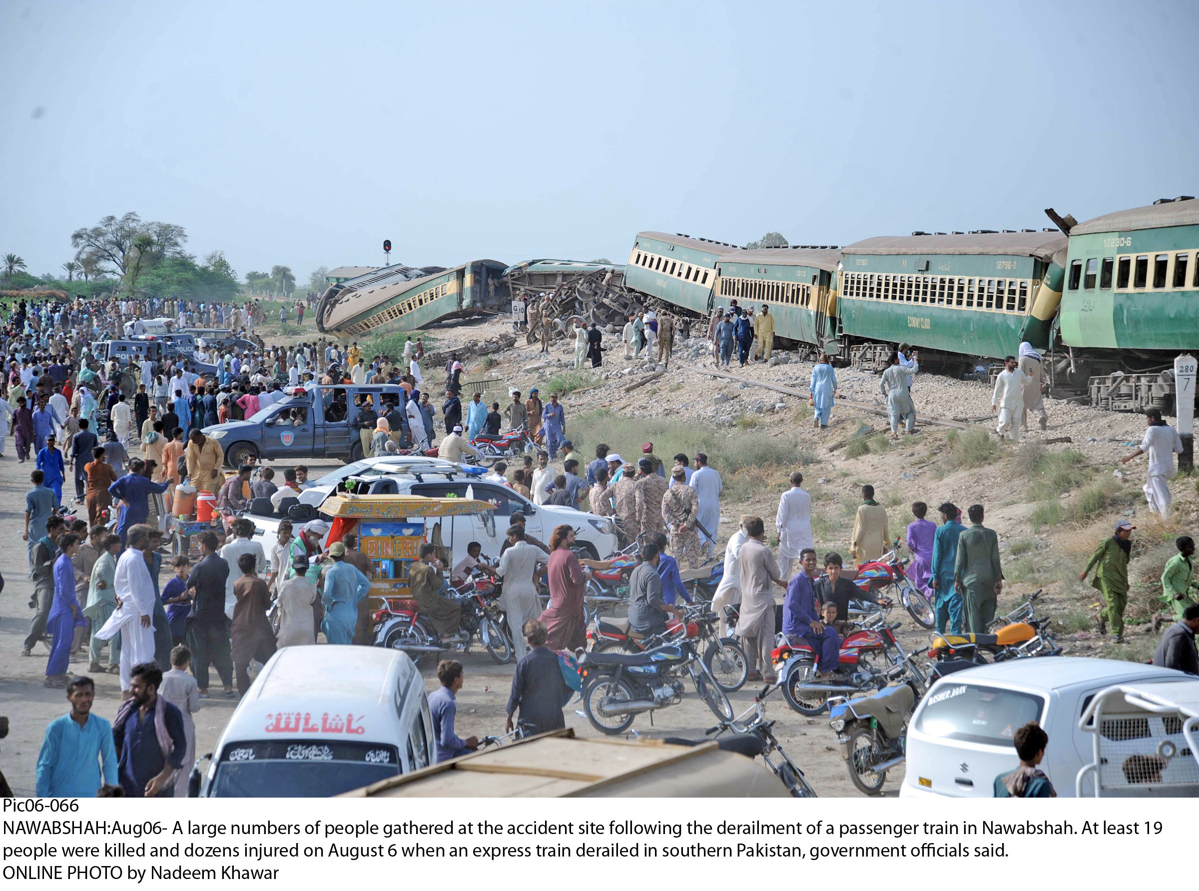 Nawab Shah :At least 30 people were dead and over 100 sustained injuries when 10 bogies of Hazara Express travelling from Karachi to Rawalpindi derailed near Nawab Shah,