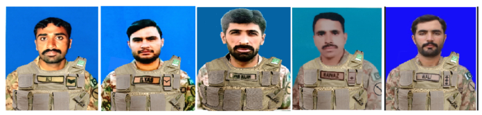 However, during intense exchange of fire, Captain Abdul Wali (age 26 years, resident of Wana / South Waziristan District), Naib Subedar Nawaz (age 45 years, resident of Abbottabad), Havaldar Ghulam Ali (age 34 years, resident of Sargodha), Lance Naik Ilyas (age 33 years, resident of Mianwali) and Sepoy Zafar Ullah (age 29 years, resident of Mianwali) having fought gallantly, embraced shahadat.