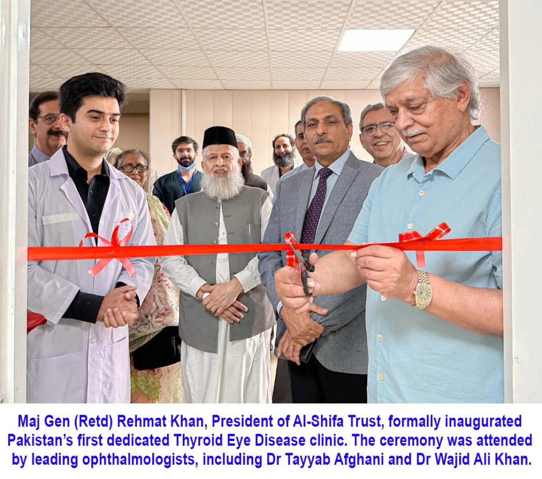Rawalpindi, September 8, 2024:Pakistan’s first Thyroid Eye Disease clinic has opened at Al Shifa Trust Eye Hospital, Rawalpindi, offering integrated care for a condition that affects millions but remains widely misdiagnosed. The facility marks a turning point in treating conditions linked to thyroid dysfunction.