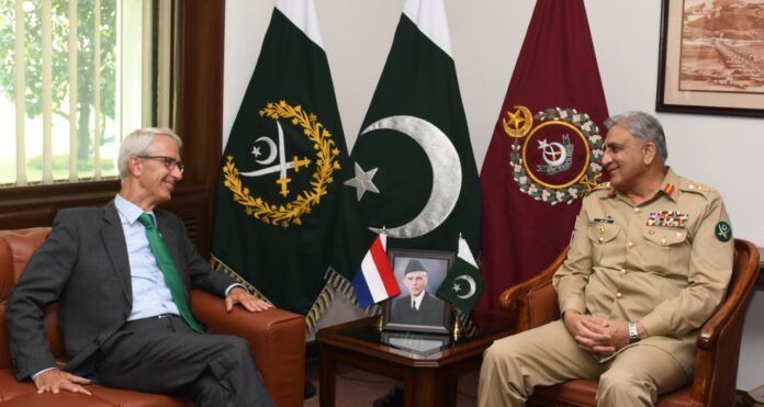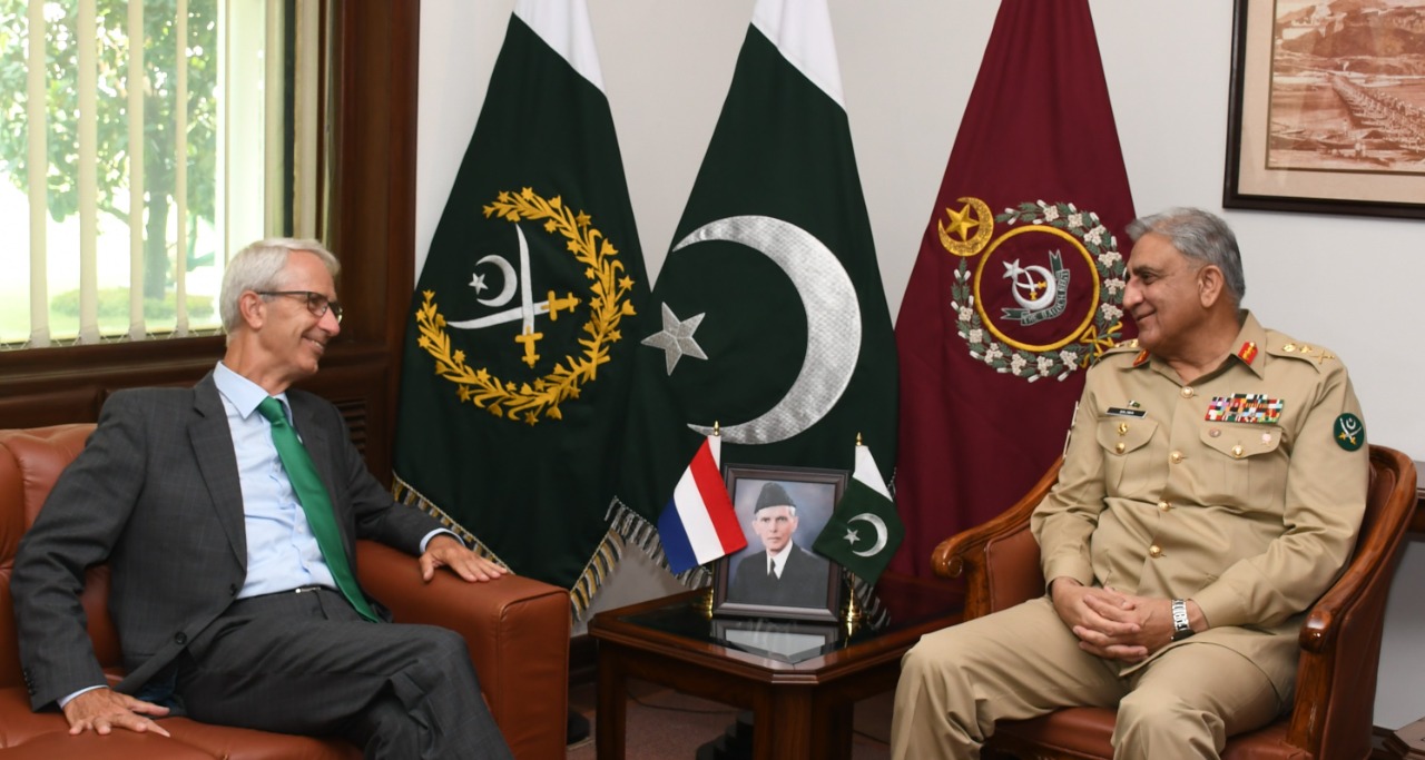 During the meeting, matters of mutual interests, regional security situation and bilateral cooperation in various fields were discussed. COAS said that Pakistan values its relations with the Netherlands and we earnestly look forward to enhance mutually beneficial multi-domain relations based on common interests. He also thanked visiting dignitary for his services and appreciated his contributions for fostering strong ties between the two countries.