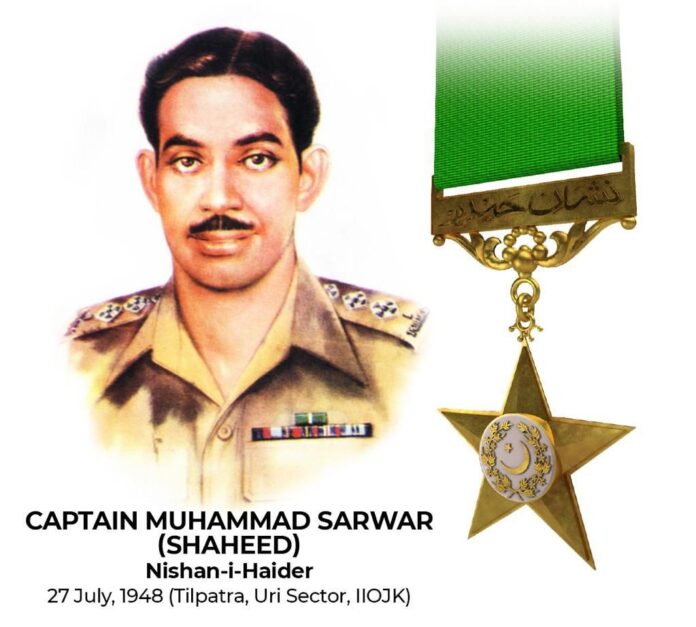 Captain Muhammad Sarwar, the first recipient of Nishan-e-Haider, who demonstrated indomitable courage and velour in defense of motherland and embraced Shahadat at Tilpatra (Azad Kashmir) in 1948.