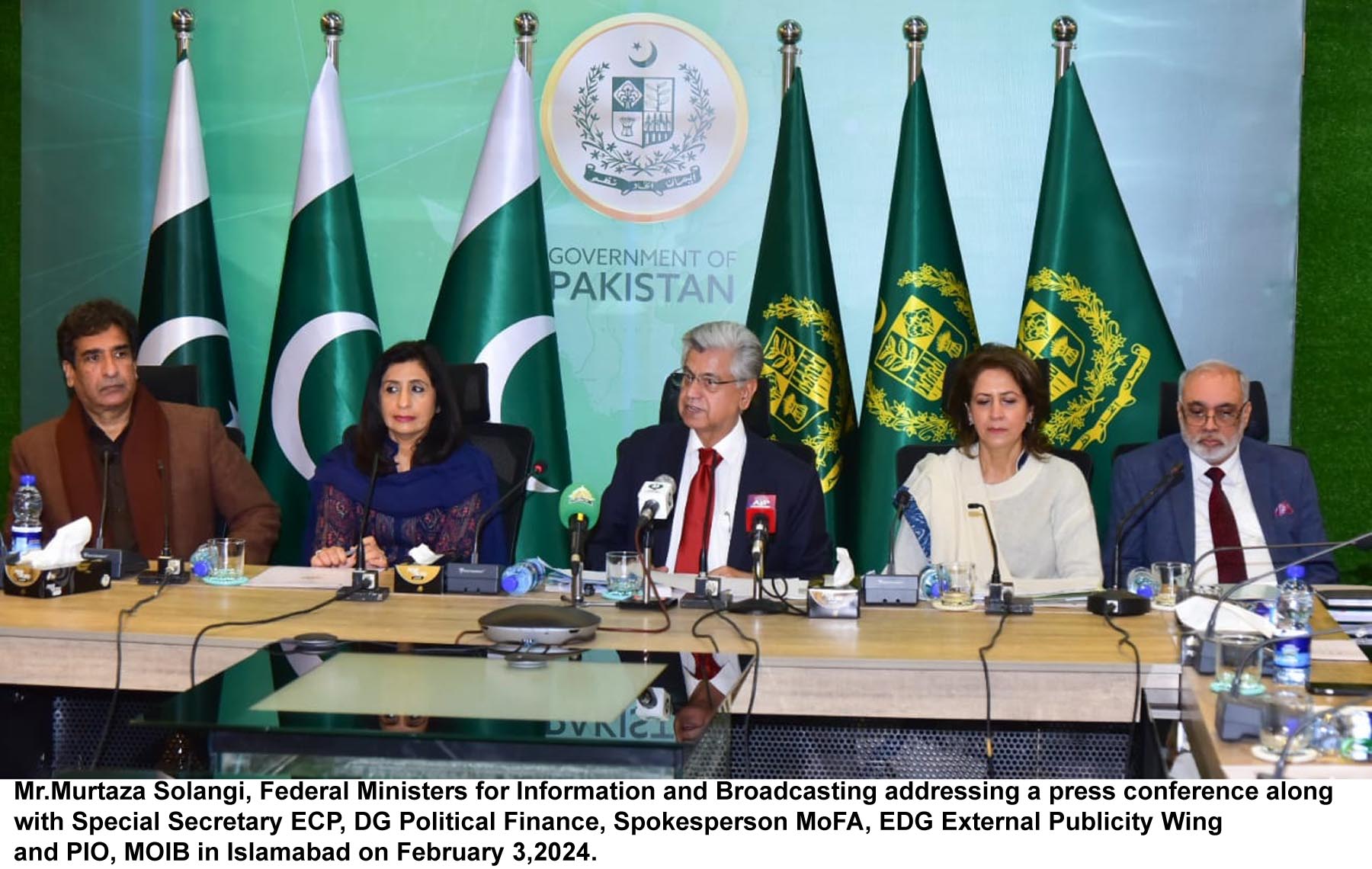 ISLAMABAD:The Federal Minister of Information, Broadcasting, and Parliamentary Affairs, Murtaza Solangi, said on Saturday that all arrangements had been finalized for conducting peaceful, fair, free, and transparent elections in Pakistan on February 8.