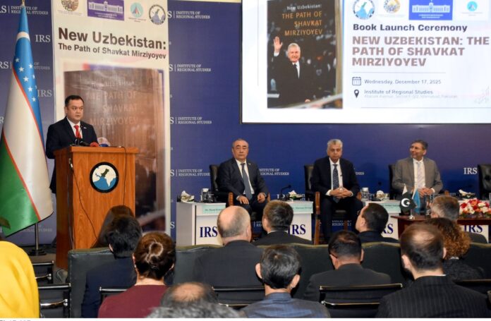 ISLAMABAD:The Institute of Regional Studies (IRS), Islamabad, in collaboration with the Embassy of Uzbekistan, hosted a book launch ceremony for New Uzbekistan: The Path of Shavkat Mirziyoyev, bringing together diplomats, policymakers, scholars, and members of civil society. The event underscored Uzbekistan’s reform-driven transformation under President Shavkat Mirziyoyev and highlighted the deepening partnership between Pakistan and Uzbekistan.