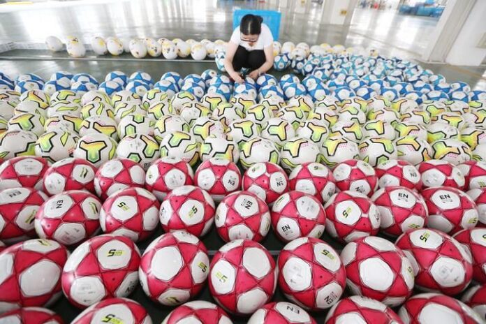 Hu Fangjun, general manager of a sports goods manufacturer in Yiwu, also feels the spike in interest around sports. The factory where Hu works can produce more than 1,000 footballs daily, but that still falls far short of demand.