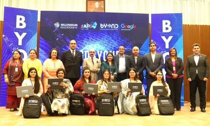 The highlight of the event was the #IGOBYOND Chromebook Distribution Ceremony, marking a defining moment in Pakistan’s educational transformation. Over 150 high-performance Google Chromebooks were distributed among teachers and practitioners across Future World Schools. Each Chromebook—preloaded with the premium Google for Education license—serves as a powerful gateway to digital collaboration, innovative teaching, and enhanced student engagement. This large-scale distribution not only replaces traditional notebooks but also symbolizes the evolution from textbooks to techbooks, cementing The Millennium Education reputation as a national leader in educational innovation.