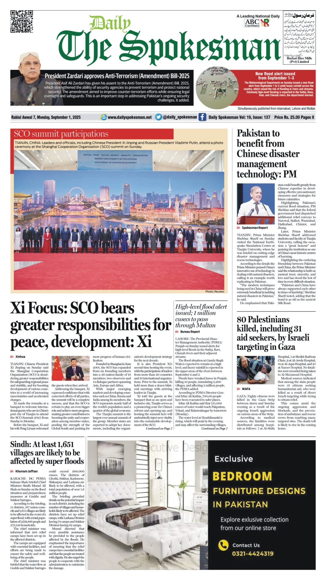 Daily The Spokesman PDF Daily The Spokesman 01 September 2025 PDF By News Desk September 1, 2025 0 473 Share FacebookTwitterPinterestWhatsAppLinkedinEmailTelegram Must read Prime Minister Appoints Dr Kabir Ahmed Sidhu as Chairman SECP January 10, 2026 PPCBL Engages AlHuda CIBE for Islamic Banking Transformation January 10, 2026 Â Int’l firms’ participation in PSL teams’ auction to promote foreign investment in country: PM January 9, 2026 Police Performance in Multan: The Widening Gap Between Claims and Reality January 9, 2026 News Deskhttps://dailyspokesman.net/live Daily The Spokesman 01 September 2025 PDF TagsDaily The Spokesman 01 September 2025 PDF Share FacebookTwitterPinterestWhatsAppLinkedinEmailTelegram Previous articleDaily The Spokesman 31 August 2025 PDFNext articleTurkmenistan’s initiatives at the 80th session of the UN General Assembly can change the global agenda - Advertisement - More articles Daily The Spokesman 10 January 2026 PDF January 9, 2026 Daily The Spokesman 09 January 2026 PDF January 9, 2026 Daily The Spokesman 08 January 2026 PDF January 8, 2026 - Advertisement - Latest article Prime Minister Appoints Dr Kabir Ahmed Sidhu as Chairman SECP January 10, 2026 PPCBL Engages AlHuda CIBE for Islamic Banking Transformation January 10, 2026 Â Int’l firms’ participation in PSL teams’ auction to promote foreign investment in country: PM January 9, 2026 Police Performance in Multan: The Widening Gap Between Claims and Reality January 9, 2026 Daily The Spokesman 10 January 2026 PDF January 9, 2026