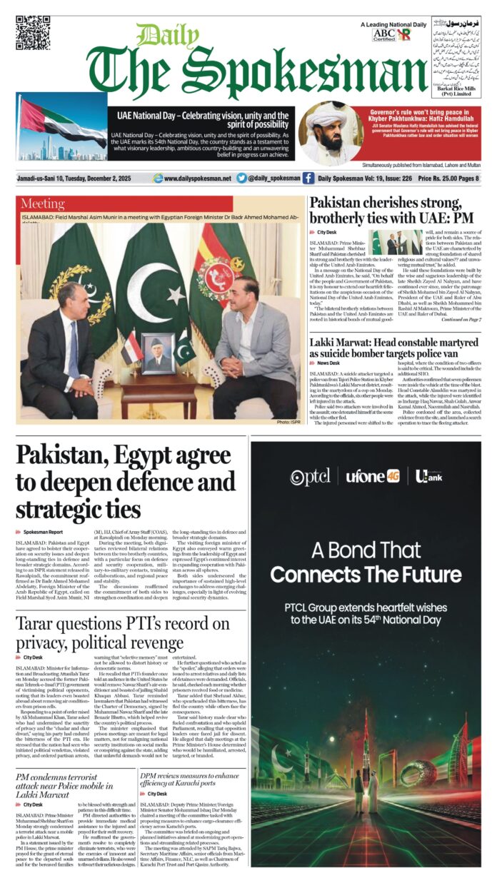 Daily The Spokesman PDF Daily The Spokesman 02 December 2025 PDF By News Desk - December 2, 2025 0 51 FacebookTwitterPinterestWhatsApp Daily The Spokesman 02 December 2025 PDF