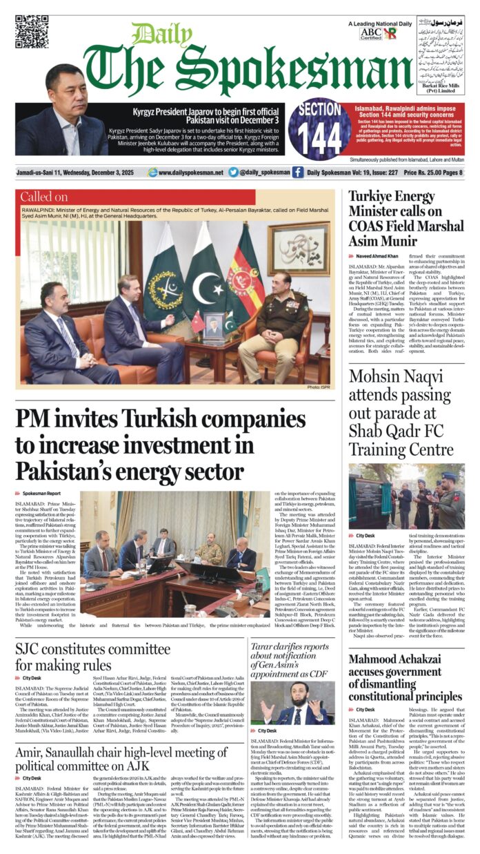 Daily The Spokesman PDF Daily The Spokesman 03 December 2025 PDF By News Desk - December 3, 2025 0 80 FacebookTwitterPinterestWhatsApp Daily The Spokesman 03 December 2025 PDF