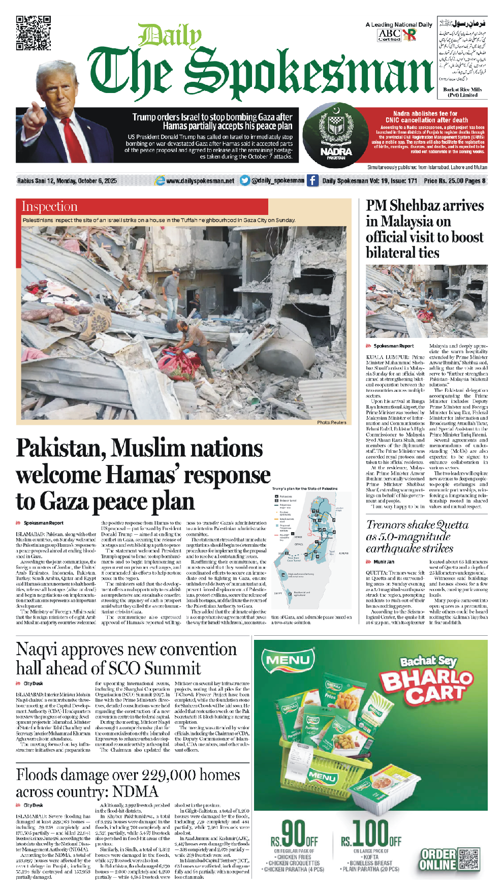 Daily The Spokesman PDF Daily The Spokesman 06 October 2025 PDF By News Desk October 6, 2025 0 105 Share FacebookTwitterPinterestWhatsAppLinkedinEmailTelegram Must read Wasim Aslam Appointed Coordinator to Chairman PMYP for Azad Jammu & Kashmir December 5, 2025 Hope 4 Humanity Gears Up for Pakistan Visit After Productive Meeting with High Commissioner December 4, 2025 Historic Visit: Pakistan and Kyrgyzstan Pen Agreements Across Energy, Mining, and Culture December 4, 2025 Daily The Spokesman 04 December 2025 PDF December 4, 2025 News Deskhttps://dailyspokesman.net/live Daily The Spokesman 06 October 2025 PDF TagsDaily The Spokesman 06 October 2025 PDF Share FacebookTwitterPinterestWhatsAppLinkedinEmailTelegram Previous articleLebanon’s Collapse: A Crisis That Could Shake the Middle EastNext articlePakistan, Malaysia sign six accords for cooperation in education, tourism, anti-corruption - Advertisement - More articles Daily The Spokesman 04 December 2025 PDF December 4, 2025 Daily The Spokesman 03 December 2025 PDF December 3, 2025 Daily The Spokesman 02 December 2025 PDF December 2, 2025 - Advertisement - Latest article Wasim Aslam Appointed Coordinator to Chairman PMYP for Azad Jammu & Kashmir December 5, 2025 Hope 4 Humanity Gears Up for Pakistan Visit After Productive Meeting with High Commissioner December 4, 2025 Historic Visit: Pakistan and Kyrgyzstan Pen Agreements Across Energy, Mining, and Culture December 4, 2025 Daily The Spokesman 04 December 2025 PDF December 4, 2025 Fauji Cement Celebrates Record 5.4 Million Ton Sales at Annual Dealers Event December 3, 2025