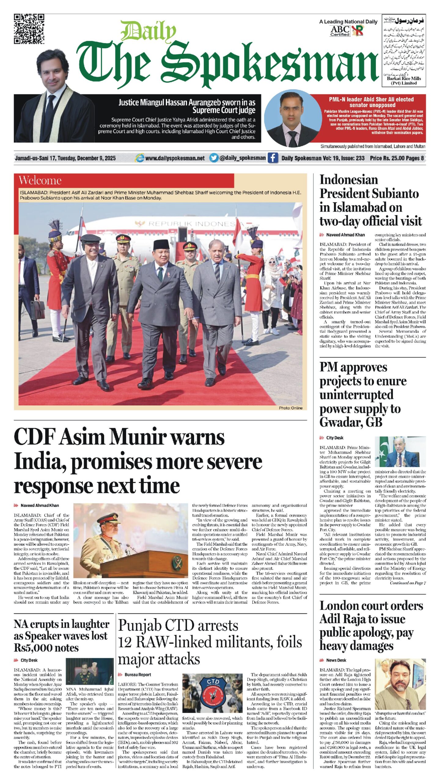 Daily The Spokesman PDF Daily The Spokesman 09 December 2025 PDF By News Desk - December 9, 2025 0 85 FacebookTwitterPinterestWhatsApp Daily The Spokesman 09 December 2025 PDF