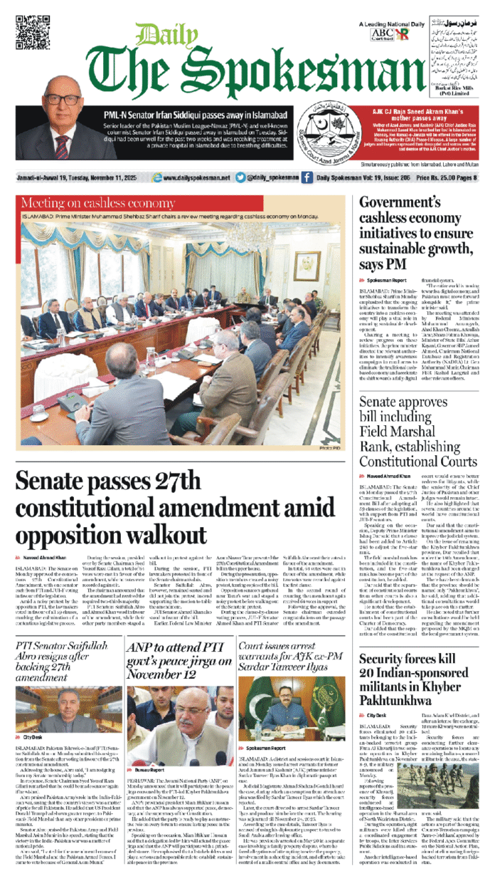 Daily The Spokesman PDF Daily The Spokesman 11 November 2025 PDF By News Desk - November 11, 2025 0 61 FacebookTwitterPinterestWhatsApp Daily The Spokesman 11 November 2025 PDF