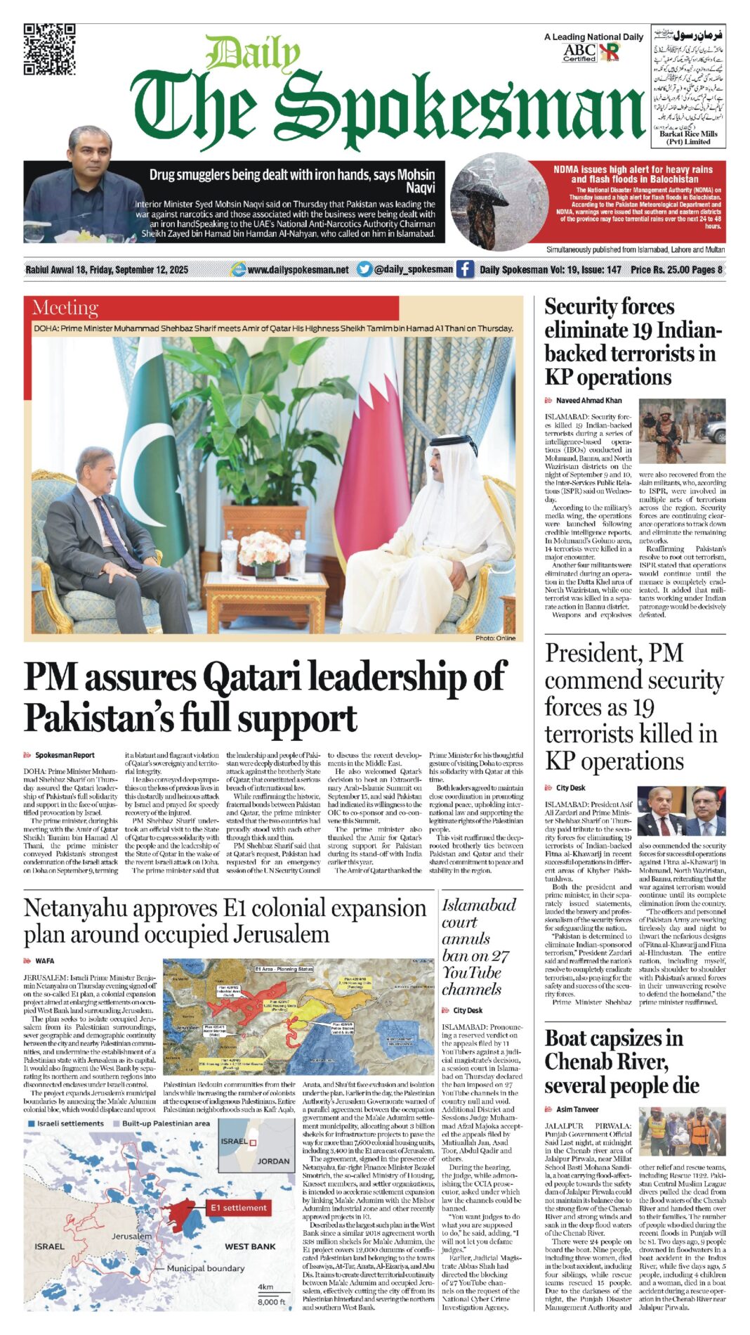 Daily The Spokesman PDF Daily The Spokesman 12 September 2025 PDF By News Desk September 12, 2025 0 121 Share FacebookTwitterPinterestWhatsAppLinkedinEmailTelegram Must read Daily The Spokesman 05 December 2025 PDF December 5, 2025 Wasim Aslam Appointed Coordinator to Chairman PMYP for Azad Jammu & Kashmir December 5, 2025 Hope 4 Humanity Gears Up for Pakistan Visit After Productive Meeting with High Commissioner December 4, 2025 Historic Visit: Pakistan and Kyrgyzstan Pen Agreements Across Energy, Mining, and Culture December 4, 2025 News Deskhttps://dailyspokesman.net/live Daily The Spokesman 12 September 2025 PDF TagsDaily The Spokesman 12 September 2025 PDF Share FacebookTwitterPinterestWhatsAppLinkedinEmailTelegram Previous article Federal Minister Holds High-Level Meeting with CEO FFC on Fertilizer PricingNext articleSECP’s reliance on contract staff puts vital data at risk - Advertisement - More articles Daily The Spokesman 05 December 2025 PDF December 5, 2025 Daily The Spokesman 04 December 2025 PDF December 4, 2025 Daily The Spokesman 03 December 2025 PDF December 3, 2025 - Advertisement - Latest article Daily The Spokesman 05 December 2025 PDF December 5, 2025 Wasim Aslam Appointed Coordinator to Chairman PMYP for Azad Jammu & Kashmir December 5, 2025 Hope 4 Humanity Gears Up for Pakistan Visit After Productive Meeting with High Commissioner December 4, 2025 Historic Visit: Pakistan and Kyrgyzstan Pen Agreements Across Energy, Mining, and Culture December 4, 2025 Daily The Spokesman 04 December 2025 PDF December 4, 2025