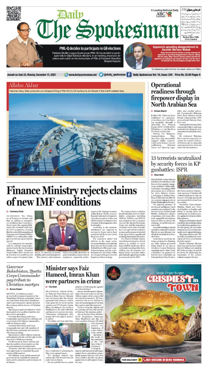 Daily The Spokesman PDF Daily The Spokesman 15 December 2025 PDF By News Desk - December 15, 2025 0 138 FacebookTwitterPinterestWhatsApp Daily The Spokesman 15 December 2025 PDF