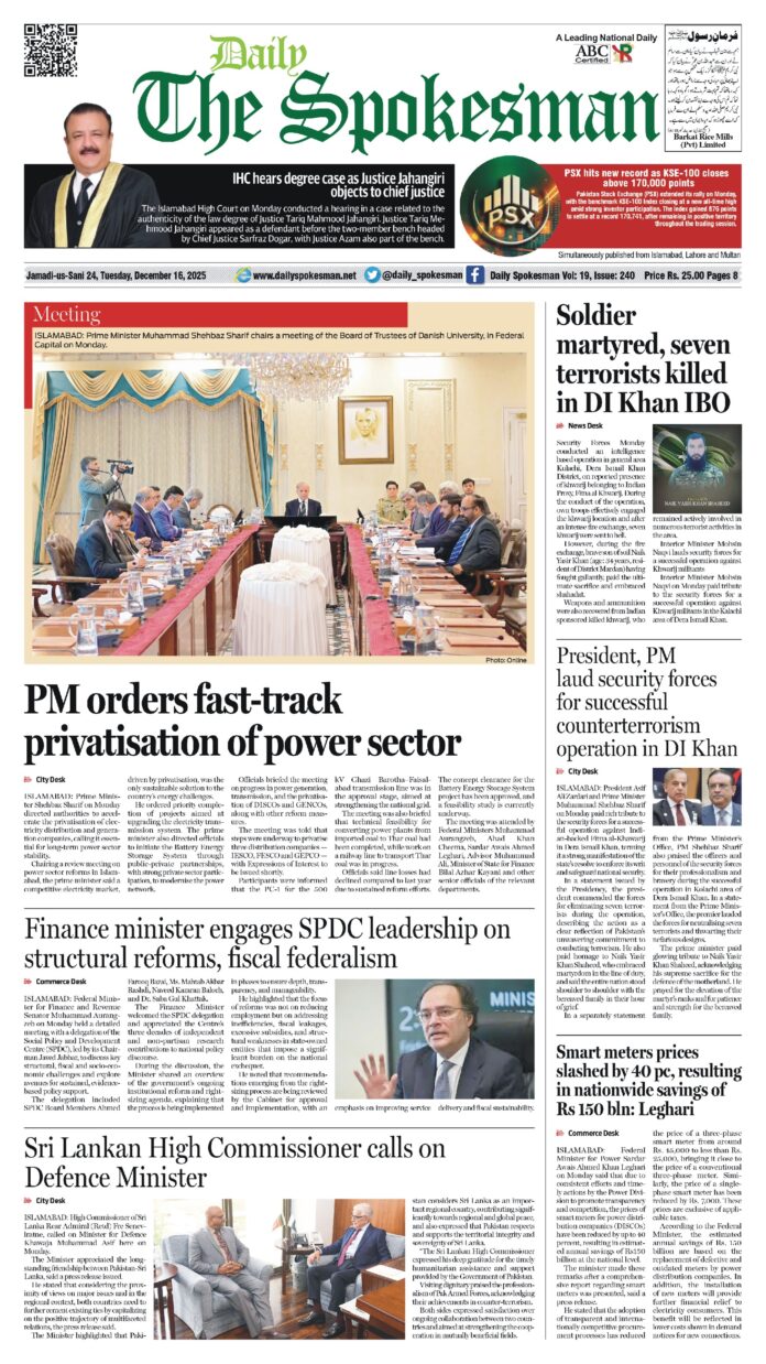 Daily The Spokesman PDF Daily The Spokesman 16 December 2025 PDF By News Desk - December 16, 2025 0 109 FacebookTwitterPinterestWhatsApp Daily The Spokesman 16 December 2025 PDF