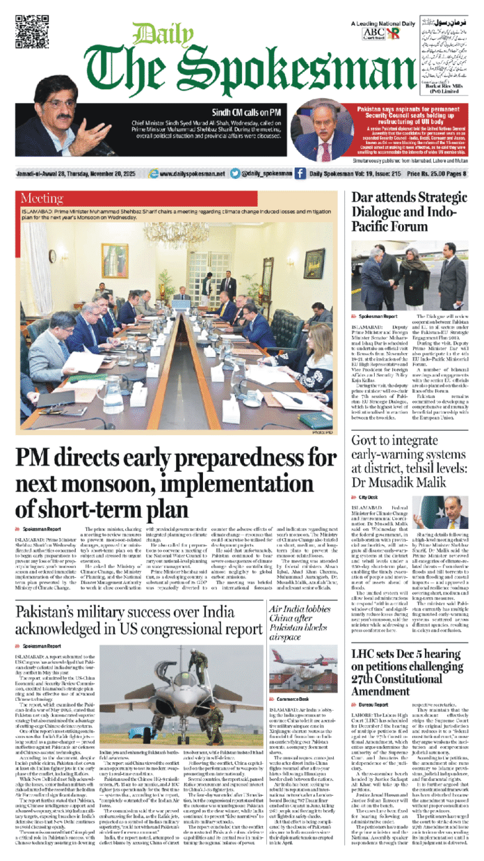 Daily The Spokesman PDF Daily The Spokesman 20 November 2025 PDF By News Desk - November 20, 2025 0 58 FacebookTwitterPinterestWhatsApp Daily The Spokesman 20 November 2025 PDF