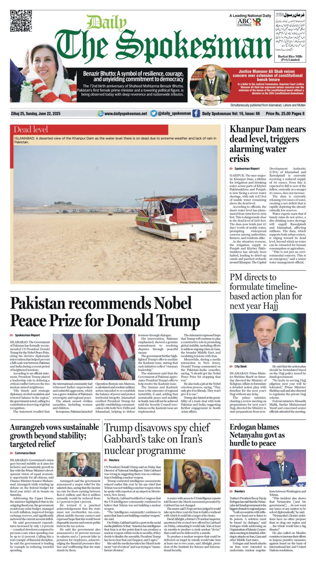 Daily The Spokesman PDF Daily The Spokesman 22 June 2025 PDF By News Desk June 22, 2025 0 469 Share FacebookTwitterPinterestWhatsAppLinkedinEmailTelegram Must read Daily The Spokesman 17 December 2025 PDF December 17, 2025 Daily The Spokesman 16 December 2025 PDF December 16, 2025 Kenya marks 62nd Jamhuri Day in Islamabad, Reaffirms strong ties with Pakistan December 15, 2025 Daily The Spokesman 15 December 2025 PDF December 15, 2025 News Deskhttps://dailyspokesman.net/live Daily The Spokesman 22 June 2025 PDF TagsDaily The Spokesman 22 June 2025 PDF Share FacebookTwitterPinterestWhatsAppLinkedinEmailTelegram Previous articlePakistan recommends Nobel Peace Prize for Donald TrumpNext articleRussian Foreign Ministry statement in connection with the US strikes on Iran - Advertisement - More articles Daily The Spokesman 17 December 2025 PDF December 17, 2025 Daily The Spokesman 16 December 2025 PDF December 16, 2025 Daily The Spokesman 15 December 2025 PDF December 15, 2025 - Advertisement - Latest article Daily The Spokesman 17 December 2025 PDF December 17, 2025 Daily The Spokesman 16 December 2025 PDF December 16, 2025 Kenya marks 62nd Jamhuri Day in Islamabad, Reaffirms strong ties with Pakistan December 15, 2025 Daily The Spokesman 15 December 2025 PDF December 15, 2025 Daily The Spokesman 14 December 2025 PDF December 14, 2025