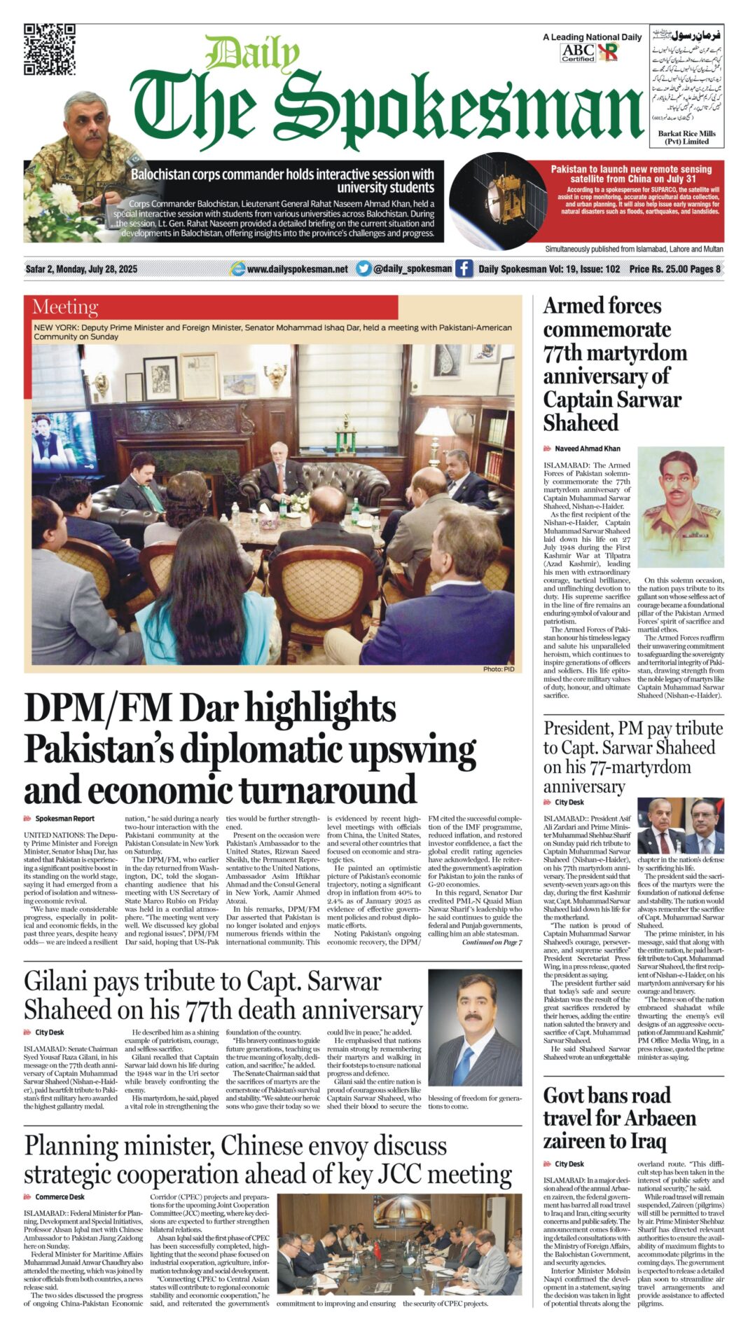 Daily The Spokesman PDF Daily The Spokesman 28 July 2025 PDF By News Desk July 28, 2025 0 571 Share FacebookTwitterPinterestWhatsAppLinkedinEmailTelegram Must read Daily The Spokesman 16 December 2025 PDF December 16, 2025 Kenya marks 62nd Jamhuri Day in Islamabad, Reaffirms strong ties with Pakistan December 15, 2025 Daily The Spokesman 15 December 2025 PDF December 15, 2025 Daily The Spokesman 14 December 2025 PDF December 14, 2025 News Deskhttps://dailyspokesman.net/live Daily The Spokesman 28 July 2025 PDF TagsDaily The Spokesman 28 July 2025 PDF Share FacebookTwitterPinterestWhatsAppLinkedinEmailTelegram Previous articleZafar Bakhtawari Meets British MP Naz Shah in BradfordNext articleWHO urges action to detect and treat over 13.8 million people infected with hepatitis B and C in Pakistan - Advertisement - More articles Daily The Spokesman 16 December 2025 PDF December 16, 2025 Daily The Spokesman 15 December 2025 PDF December 15, 2025 Daily The Spokesman 14 December 2025 PDF December 14, 2025 - Advertisement - Latest article Daily The Spokesman 16 December 2025 PDF December 16, 2025 Kenya marks 62nd Jamhuri Day in Islamabad, Reaffirms strong ties with Pakistan December 15, 2025 Daily The Spokesman 15 December 2025 PDF December 15, 2025 Daily The Spokesman 14 December 2025 PDF December 14, 2025 Field Marshal Munir Commends Pakistan Army’s Resolve Against Internal and External Challenges December 13, 2025