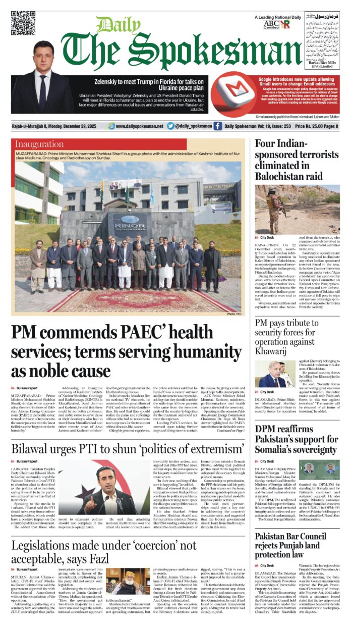 Daily The Spokesman PDF Daily The Spokesman 29 December 2025 PDF By News Desk - December 29, 2025 0 57 FacebookTwitterPinterestWhatsApp Daily The Spokesman 29 December 2025 PDF