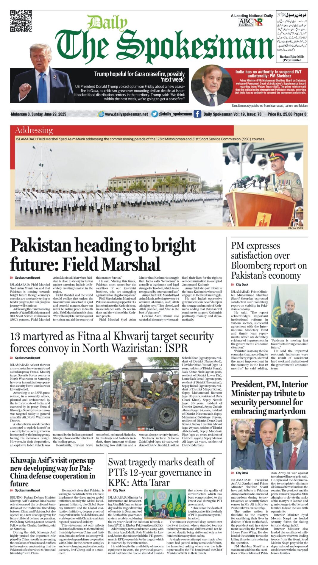Daily The Spokesman PDF Daily The Spokesman 29 June 2025 PDF By News Desk June 29, 2025 0 434 Share FacebookTwitterPinterestWhatsAppLinkedinEmailTelegram Must read Daily The Spokesman 17 December 2025 PDF December 17, 2025 Daily The Spokesman 16 December 2025 PDF December 16, 2025 Kenya marks 62nd Jamhuri Day in Islamabad, Reaffirms strong ties with Pakistan December 15, 2025 Daily The Spokesman 15 December 2025 PDF December 15, 2025 News Deskhttps://dailyspokesman.net/live Daily The Spokesman 29 June 2025 PDF TagsDaily The Spokesman 29 June 2025 PDF Share FacebookTwitterPinterestWhatsAppLinkedinEmailTelegram Previous articleHuawei Launches Smart Hybrid Energy System in Pakistan, Ushering in a New Era of Solar IndependenceNext articleDaily The Spokesman 30 June 2025 PDF - Advertisement - More articles Daily The Spokesman 17 December 2025 PDF December 17, 2025 Daily The Spokesman 16 December 2025 PDF December 16, 2025 Daily The Spokesman 15 December 2025 PDF December 15, 2025 - Advertisement - Latest article Daily The Spokesman 17 December 2025 PDF December 17, 2025 Daily The Spokesman 16 December 2025 PDF December 16, 2025 Kenya marks 62nd Jamhuri Day in Islamabad, Reaffirms strong ties with Pakistan December 15, 2025 Daily The Spokesman 15 December 2025 PDF December 15, 2025 Daily The Spokesman 14 December 2025 PDF December 14, 2025