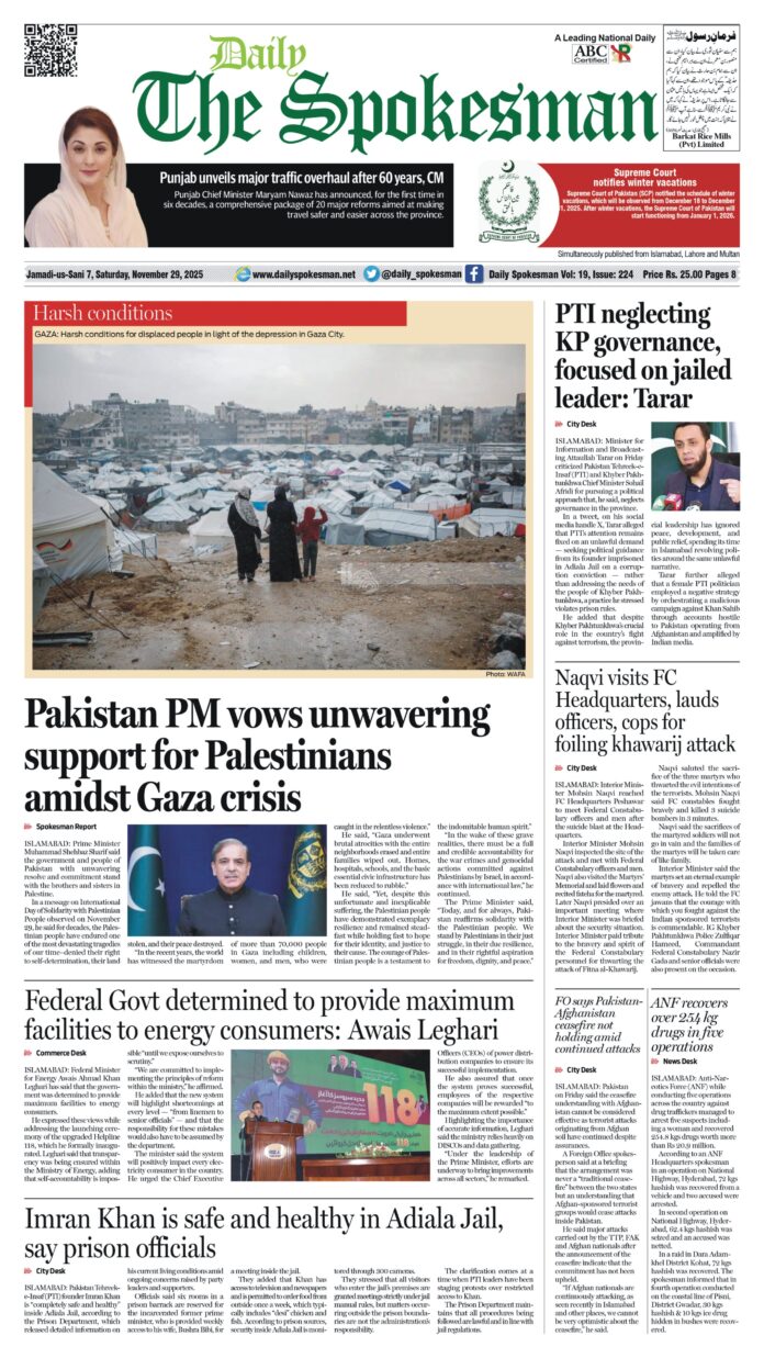 Daily The Spokesman PDF Daily The Spokesman 29 November 2025 PDF By News Desk - November 29, 2025 0 47 FacebookTwitterPinterestWhatsApp Daily The Spokesman 29 November 2025 PDF