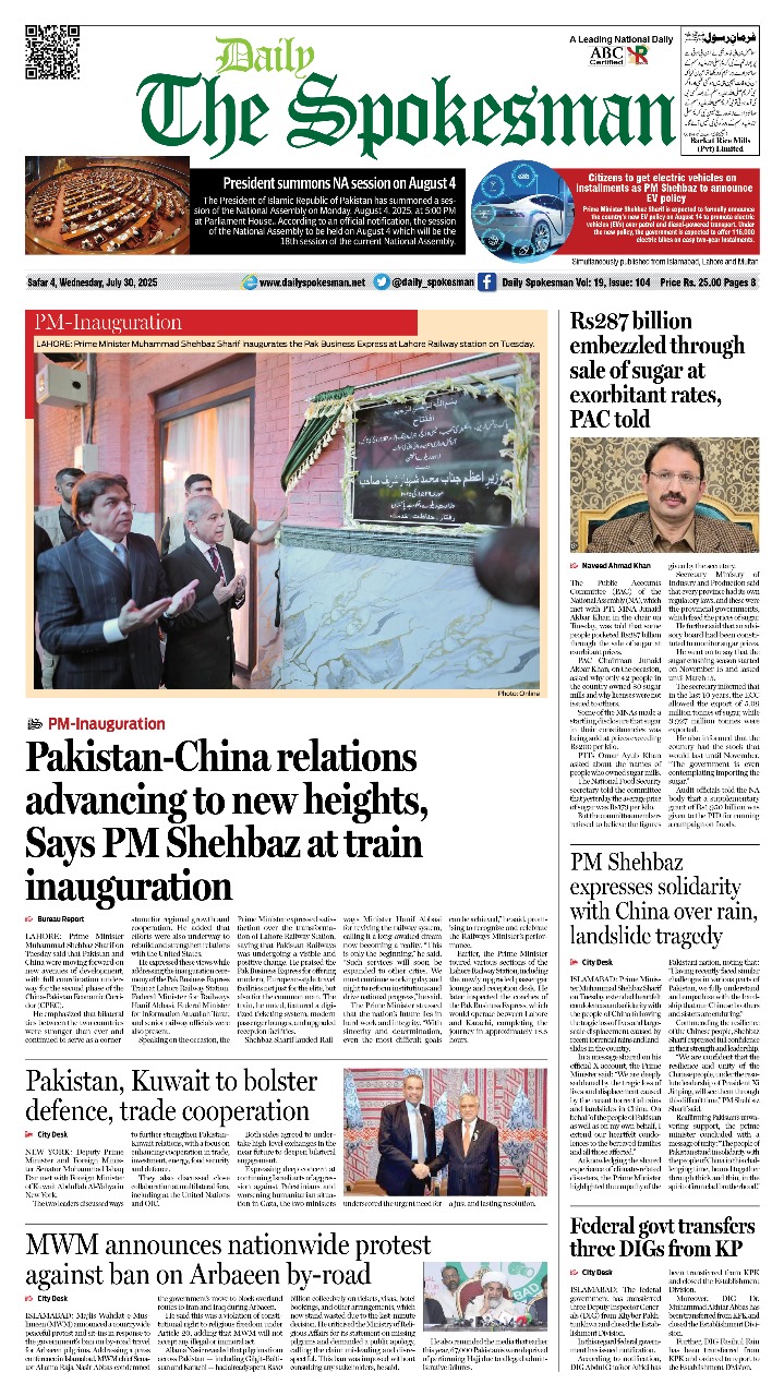 Daily The Spokesman PDF Daily The Spokesman 30 July 2025 PDF By News Desk July 30, 2025 0 608 Share FacebookTwitterPinterestWhatsAppLinkedinEmailTelegram Must read Daily The Spokesman 16 December 2025 PDF December 16, 2025 Kenya marks 62nd Jamhuri Day in Islamabad, Reaffirms strong ties with Pakistan December 15, 2025 Daily The Spokesman 15 December 2025 PDF December 15, 2025 Daily The Spokesman 14 December 2025 PDF December 14, 2025 News Deskhttps://dailyspokesman.net/live Daily The Spokesman 30 July 2025 PDF TagsDaily The Spokesman 30 July 2025 PDF Share FacebookTwitterPinterestWhatsAppLinkedinEmailTelegram Previous articlePalestinian Prime Minister Demands UN Action to Stop Israeli AggressionNext articleSECP reverses unlawful action as transparency gaps exposed. - Advertisement - More articles Daily The Spokesman 16 December 2025 PDF December 16, 2025 Daily The Spokesman 15 December 2025 PDF December 15, 2025 Daily The Spokesman 14 December 2025 PDF December 14, 2025 - Advertisement - Latest article Daily The Spokesman 16 December 2025 PDF December 16, 2025 Kenya marks 62nd Jamhuri Day in Islamabad, Reaffirms strong ties with Pakistan December 15, 2025 Daily The Spokesman 15 December 2025 PDF December 15, 2025 Daily The Spokesman 14 December 2025 PDF December 14, 2025 Field Marshal Munir Commends Pakistan Army’s Resolve Against Internal and External Challenges December 13, 2025