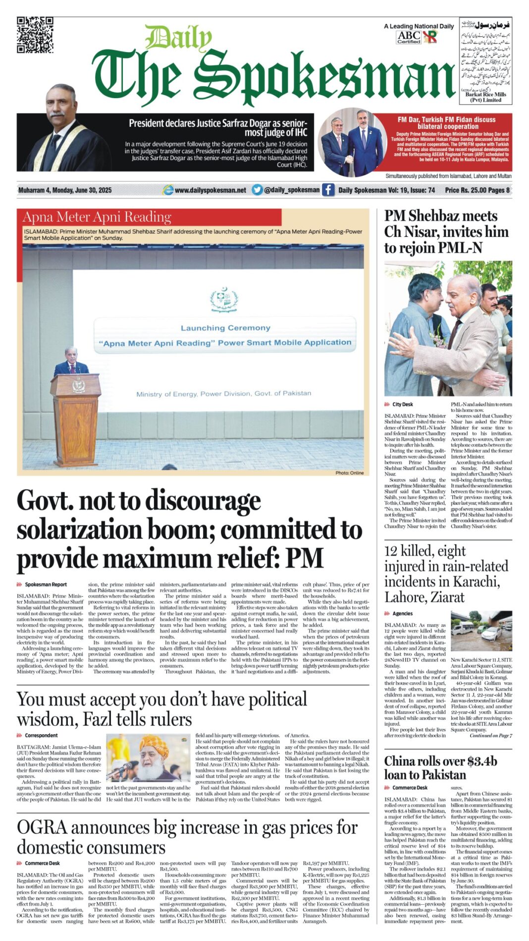 Daily The Spokesman PDF Daily The Spokesman 30 June 2025 PDF By News Desk June 30, 2025 0 424 Share FacebookTwitterPinterestWhatsAppLinkedinEmailTelegram Must read Daily The Spokesman 16 December 2025 PDF December 16, 2025 Kenya marks 62nd Jamhuri Day in Islamabad, Reaffirms strong ties with Pakistan December 15, 2025 Daily The Spokesman 15 December 2025 PDF December 15, 2025 Daily The Spokesman 14 December 2025 PDF December 14, 2025 News Deskhttps://dailyspokesman.net/live Daily The Spokesman 30 June 2025 PDF TagsDaily The Spokesman 30 June 2025 PDF Share FacebookTwitterPinterestWhatsAppLinkedinEmailTelegram Previous articleDaily The Spokesman 29 June 2025 PDFNext articleWorld Bank Appoints New Country Director for Pakistan - Advertisement - More articles Daily The Spokesman 16 December 2025 PDF December 16, 2025 Daily The Spokesman 15 December 2025 PDF December 15, 2025 Daily The Spokesman 14 December 2025 PDF December 14, 2025 - Advertisement - Latest article Daily The Spokesman 16 December 2025 PDF December 16, 2025 Kenya marks 62nd Jamhuri Day in Islamabad, Reaffirms strong ties with Pakistan December 15, 2025 Daily The Spokesman 15 December 2025 PDF December 15, 2025 Daily The Spokesman 14 December 2025 PDF December 14, 2025 Field Marshal Munir Commends Pakistan Army’s Resolve Against Internal and External Challenges December 13, 2025