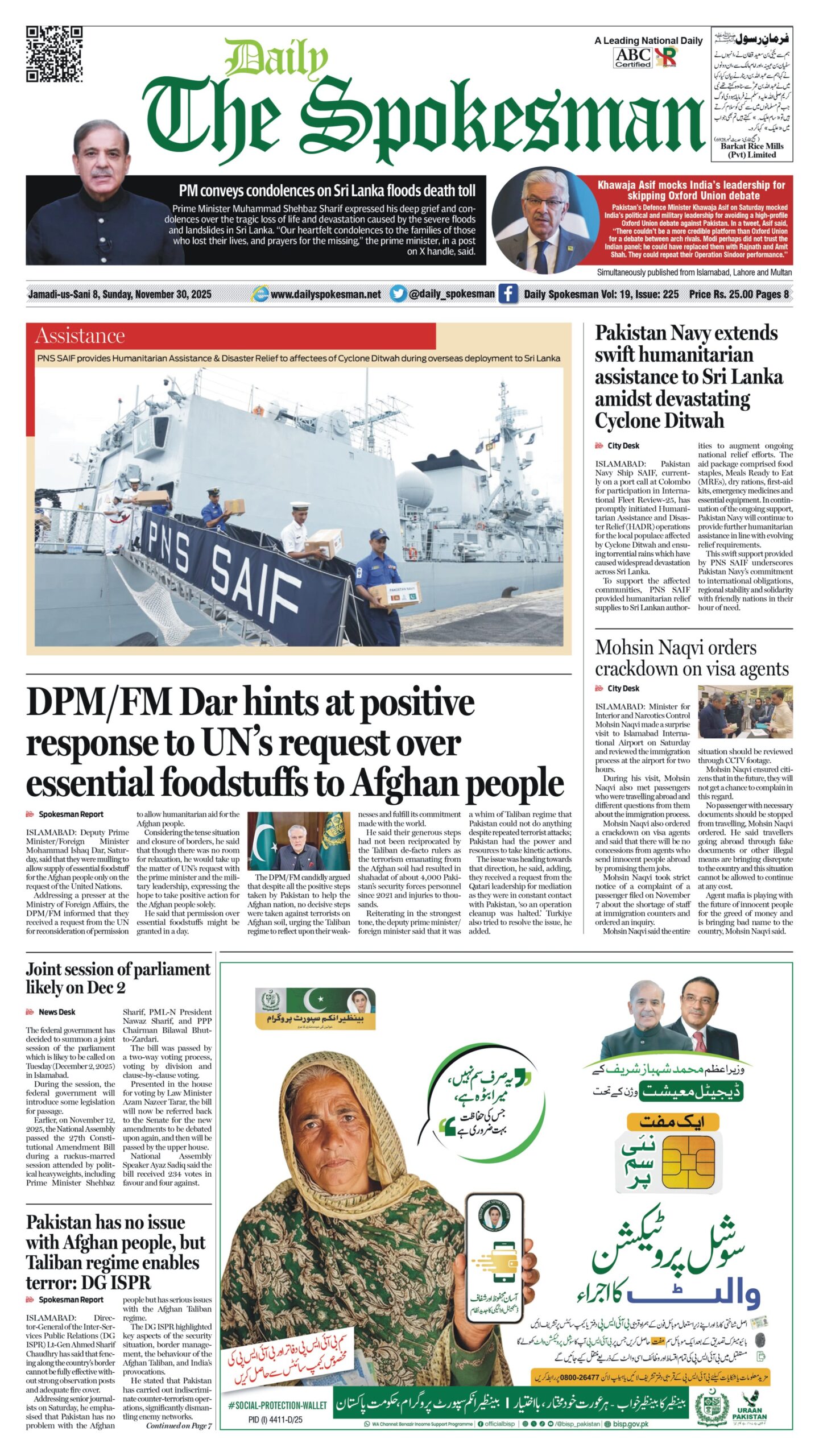 Daily The Spokesman PDF Daily The Spokesman 30 November 2025 PDF By News Desk - November 30, 2025 0 23 FacebookTwitterPinterestWhatsApp Daily The Spokesman 30 November 2025 PDF
