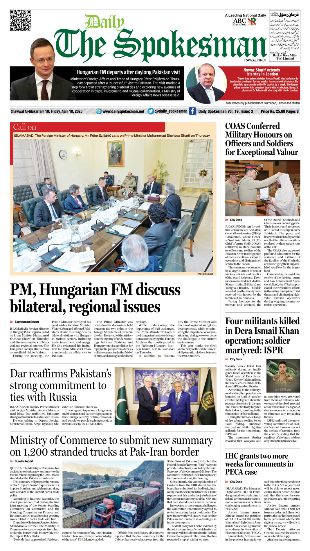 Daily The Spokesman PDF Daily The Spokesman April 18 2025 PDF By News Desk April 18, 2025 0 588 Share FacebookTwitterPinterestWhatsAppLinkedinEmailTelegram Must read Daily The Spokesman 17 December 2025 PDF December 17, 2025 Daily The Spokesman 16 December 2025 PDF December 16, 2025 Kenya marks 62nd Jamhuri Day in Islamabad, Reaffirms strong ties with Pakistan December 15, 2025 Daily The Spokesman 15 December 2025 PDF December 15, 2025 News Deskhttps://dailyspokesman.net/live Daily The Spokesman April 18 2025 PDF TagsDaily The Spokesman April 18 2025 PDF Share FacebookTwitterPinterestWhatsAppLinkedinEmailTelegram Previous articleDaily The Spokesman April 17 2025 PDFNext articleCelebrating the National Day of Zimbabwe - Advertisement - More articles Daily The Spokesman 17 December 2025 PDF December 17, 2025 Daily The Spokesman 16 December 2025 PDF December 16, 2025 Daily The Spokesman 15 December 2025 PDF December 15, 2025 - Advertisement - Latest article Daily The Spokesman 17 December 2025 PDF December 17, 2025 Daily The Spokesman 16 December 2025 PDF December 16, 2025 Kenya marks 62nd Jamhuri Day in Islamabad, Reaffirms strong ties with Pakistan December 15, 2025 Daily The Spokesman 15 December 2025 PDF December 15, 2025 Daily The Spokesman 14 December 2025 PDF December 14, 2025