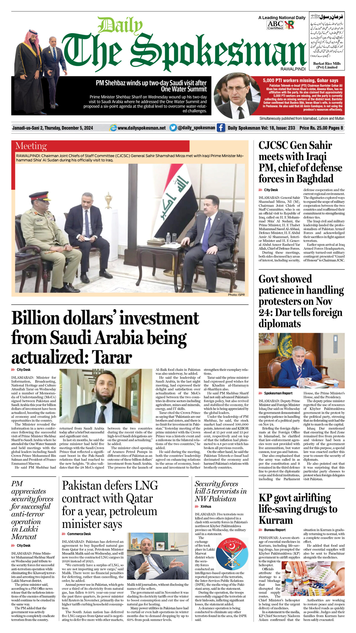 Daily The Spokesman PDF Daily The Spokesman December 05 2024 PDF By News Desk - December 5, 2024 0 527 FacebookTwitterPinterestWhatsAppLinkedinEmailTelegram Daily The Spokesman December 05 2024 PDF
