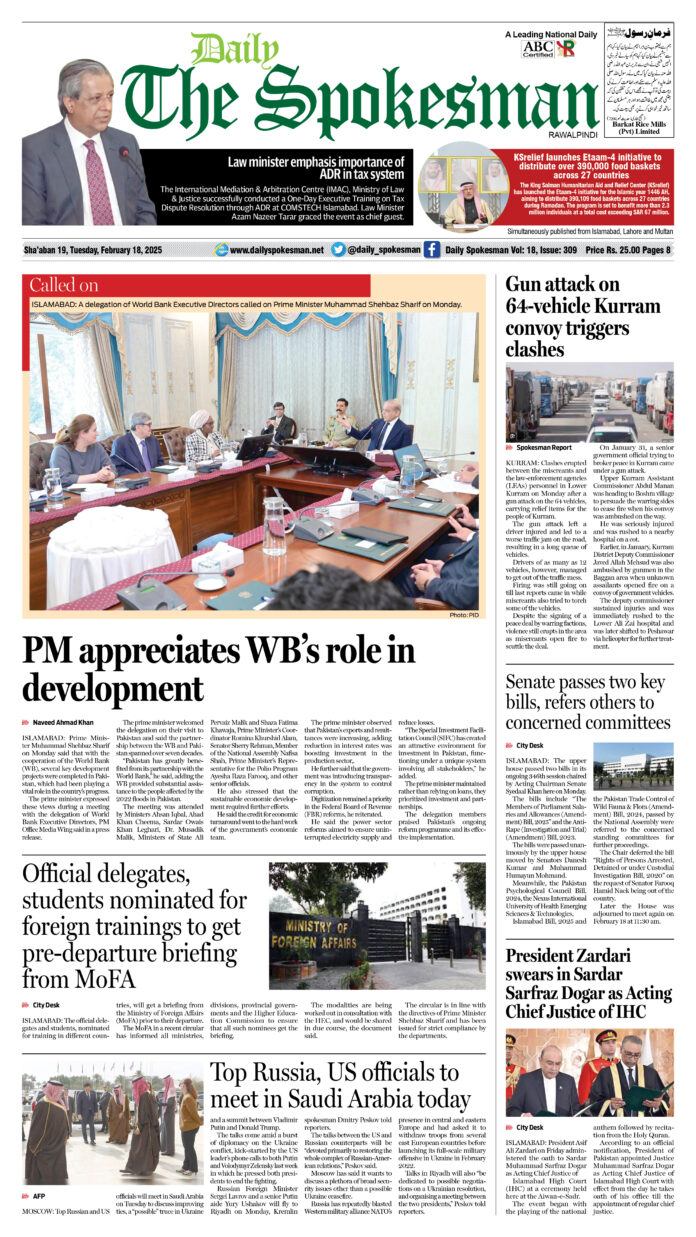 Daily The Spokesman PDF Daily The Spokesman February 18 2025 PDF By News Desk - February 18, 2025 0 345 FacebookTwitterPinterestWhatsAppLinkedinEmailTelegram Daily The Spokesman February 18 2025 PDF