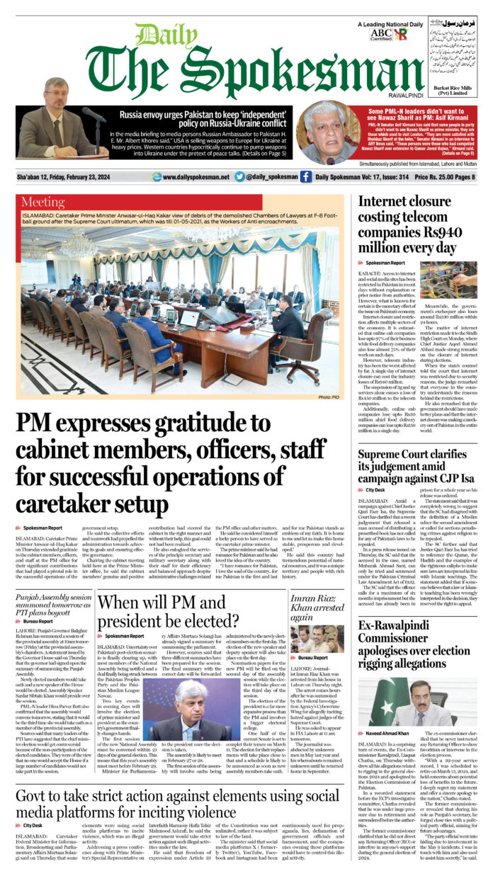 Uncategorized Daily The Spokesman February 23 2024 By News Desk - February 23, 2024 0 430 FacebookTwitterPinterestWhatsAppLinkedinEmailTelegram Booklet is empty or it doesn't exist.