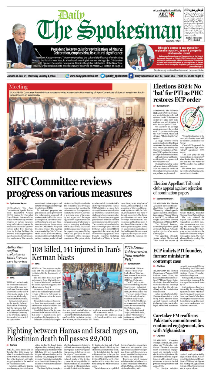 Uncategorized Daily The Spokesman January 04 2024 By News Desk - January 4, 2024 0 338 FacebookTwitterPinterestWhatsAppLinkedinEmailTelegram Booklet is empty or it doesn't exist.