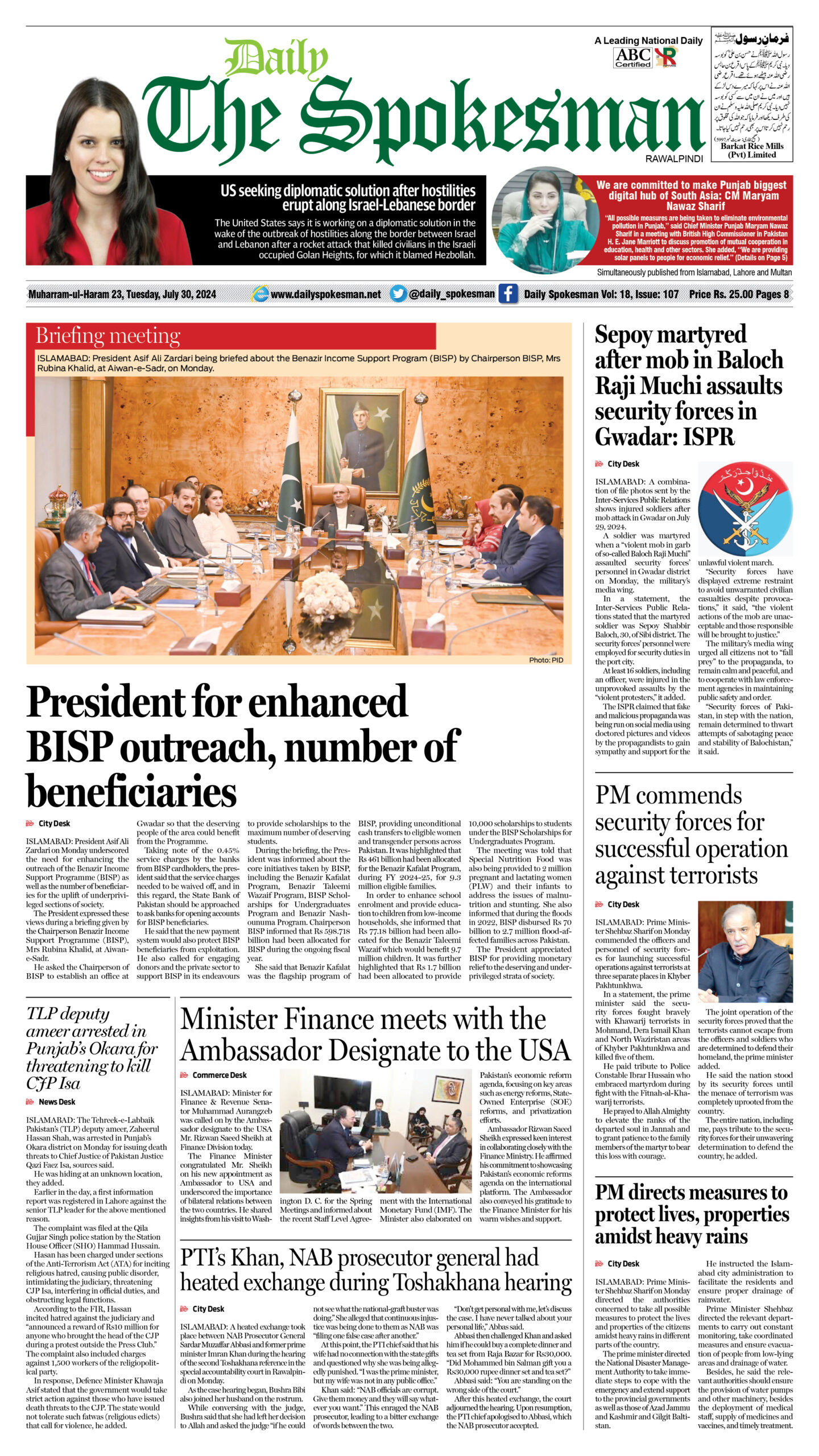 Uncategorized Daily The Spokesman July 30 2024 By News Desk - July 30, 2024 0 536 FacebookTwitterPinterestWhatsAppLinkedinEmailTelegram Booklet is empty or it doesn't exist.