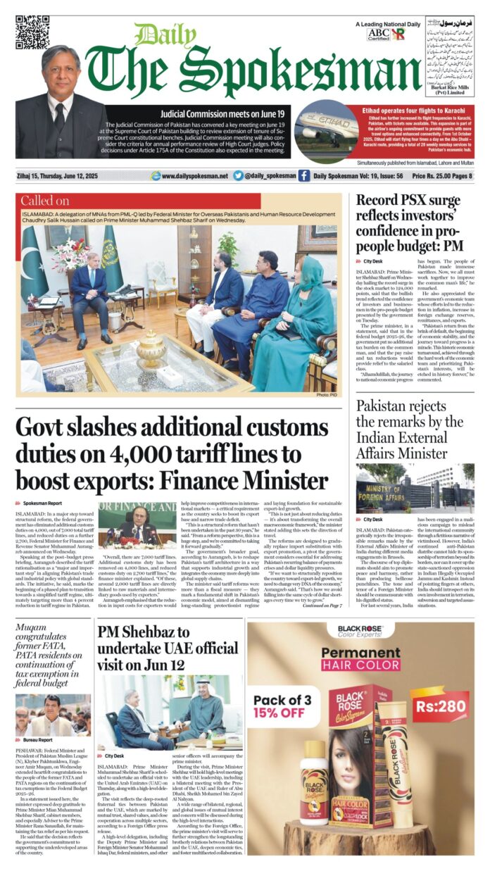 Daily The Spokesman PDF Daily The Spokesman June 12 2025 PDF By News Desk - June 12, 2025 0 447 FacebookTwitterPinterestWhatsApp Daily The Spokesman June 12 2025 PDF