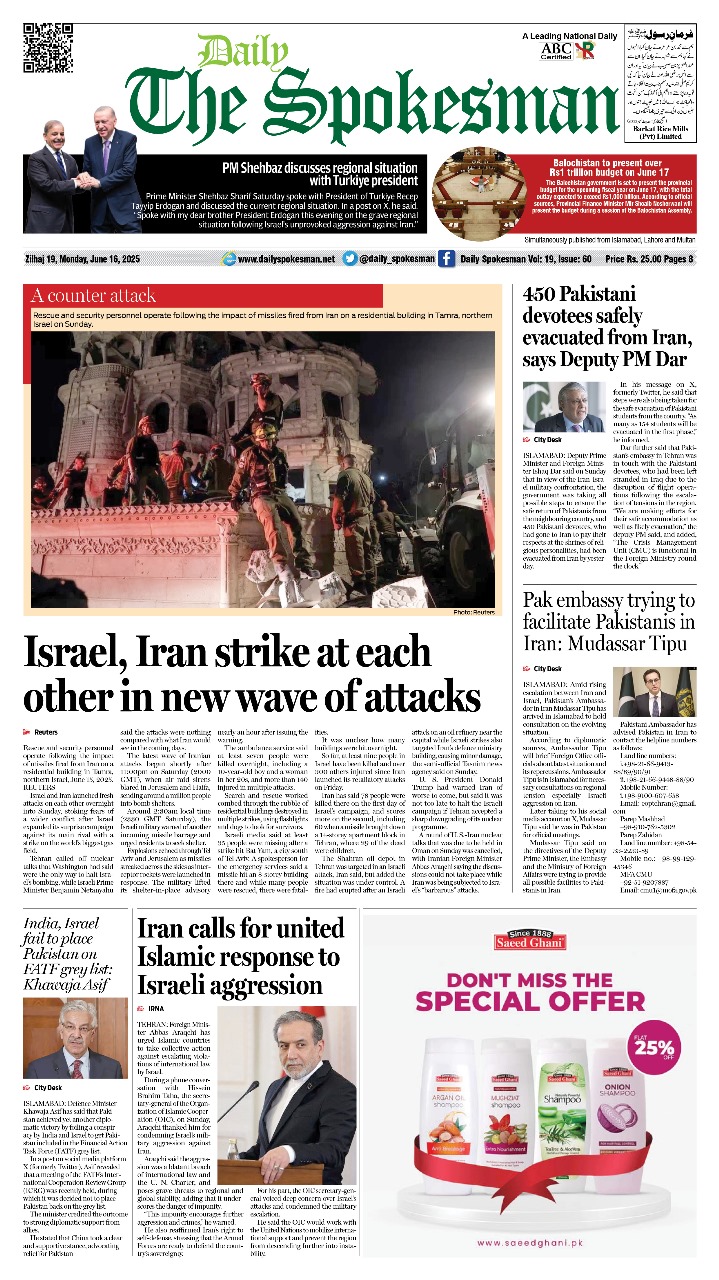 Daily The Spokesman PDF Daily The Spokesman June 16 2025 PDF By News Desk June 16, 2025 0 475 Share FacebookTwitterPinterestWhatsAppLinkedinEmailTelegram Must read Daily The Spokesman 18 December 2025 PDF December 18, 2025 Daily The Spokesman 17 December 2025 PDF December 17, 2025 Daily The Spokesman 16 December 2025 PDF December 16, 2025 Kenya marks 62nd Jamhuri Day in Islamabad, Reaffirms strong ties with Pakistan December 15, 2025 News Deskhttps://dailyspokesman.net/live Daily The Spokesman June 16 2025 PDF TagsDaily The Spokesman June 16 2025 PDF Share FacebookTwitterPinterestWhatsAppLinkedinEmailTelegram Previous articleMillennium Education hosts Grand High Achievers & Graduation Ceremony 2025Next articleTashkent Hosts Premier Gathering of Islamic Finance Leaders - Advertisement - More articles Daily The Spokesman 18 December 2025 PDF December 18, 2025 Daily The Spokesman 17 December 2025 PDF December 17, 2025 Daily The Spokesman 16 December 2025 PDF December 16, 2025 - Advertisement - Latest article Daily The Spokesman 18 December 2025 PDF December 18, 2025 Daily The Spokesman 17 December 2025 PDF December 17, 2025 Daily The Spokesman 16 December 2025 PDF December 16, 2025 Kenya marks 62nd Jamhuri Day in Islamabad, Reaffirms strong ties with Pakistan December 15, 2025 Daily The Spokesman 15 December 2025 PDF December 15, 2025
