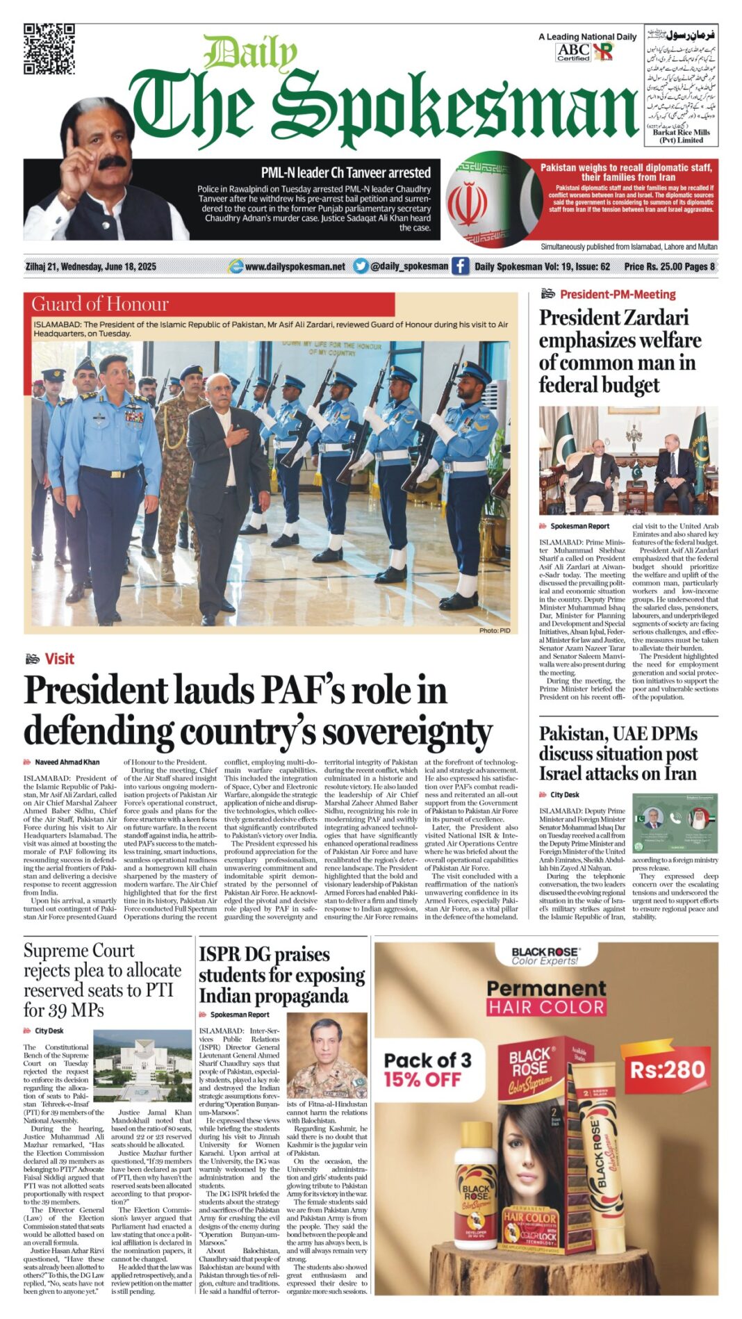 Daily The Spokesman PDF Daily The Spokesman June 18 2025 PDF By News Desk June 18, 2025 0 465 Share FacebookTwitterPinterestWhatsAppLinkedinEmailTelegram Must read Daily The Spokesman 17 December 2025 PDF December 17, 2025 Daily The Spokesman 16 December 2025 PDF December 16, 2025 Kenya marks 62nd Jamhuri Day in Islamabad, Reaffirms strong ties with Pakistan December 15, 2025 Daily The Spokesman 15 December 2025 PDF December 15, 2025 News Deskhttps://dailyspokesman.net/live Daily The Spokesman June 18 2025 PDF TagsDaily The Spokesman June 18 2025 PDF Share FacebookTwitterPinterestWhatsAppLinkedinEmailTelegram Previous articleField Marshal meets Pakistani diaspora during US visitNext articleTop Central Asian Islamic Finance Leaders Acknowledged in Uzbekistan - Advertisement - More articles Daily The Spokesman 17 December 2025 PDF December 17, 2025 Daily The Spokesman 16 December 2025 PDF December 16, 2025 Daily The Spokesman 15 December 2025 PDF December 15, 2025 - Advertisement - Latest article Daily The Spokesman 17 December 2025 PDF December 17, 2025 Daily The Spokesman 16 December 2025 PDF December 16, 2025 Kenya marks 62nd Jamhuri Day in Islamabad, Reaffirms strong ties with Pakistan December 15, 2025 Daily The Spokesman 15 December 2025 PDF December 15, 2025 Daily The Spokesman 14 December 2025 PDF December 14, 2025