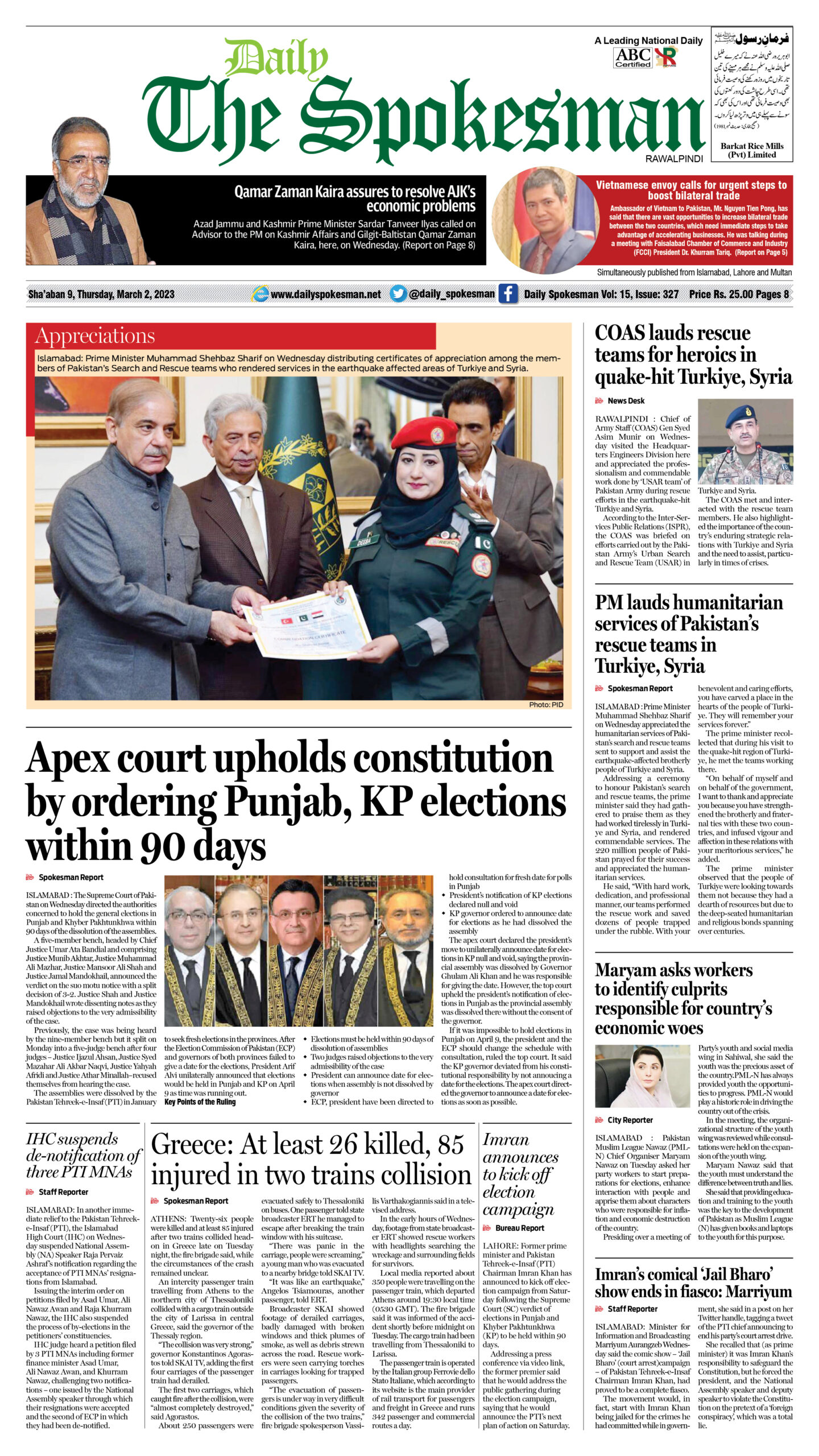 Daily The Spokesman PDF Daily The Spokesman March 02 2023 PDF By News Desk - March 2, 2023 0 590 FacebookTwitterPinterestWhatsAppLinkedinEmailTelegram Daily The Spokesman March 02 2023 PDF