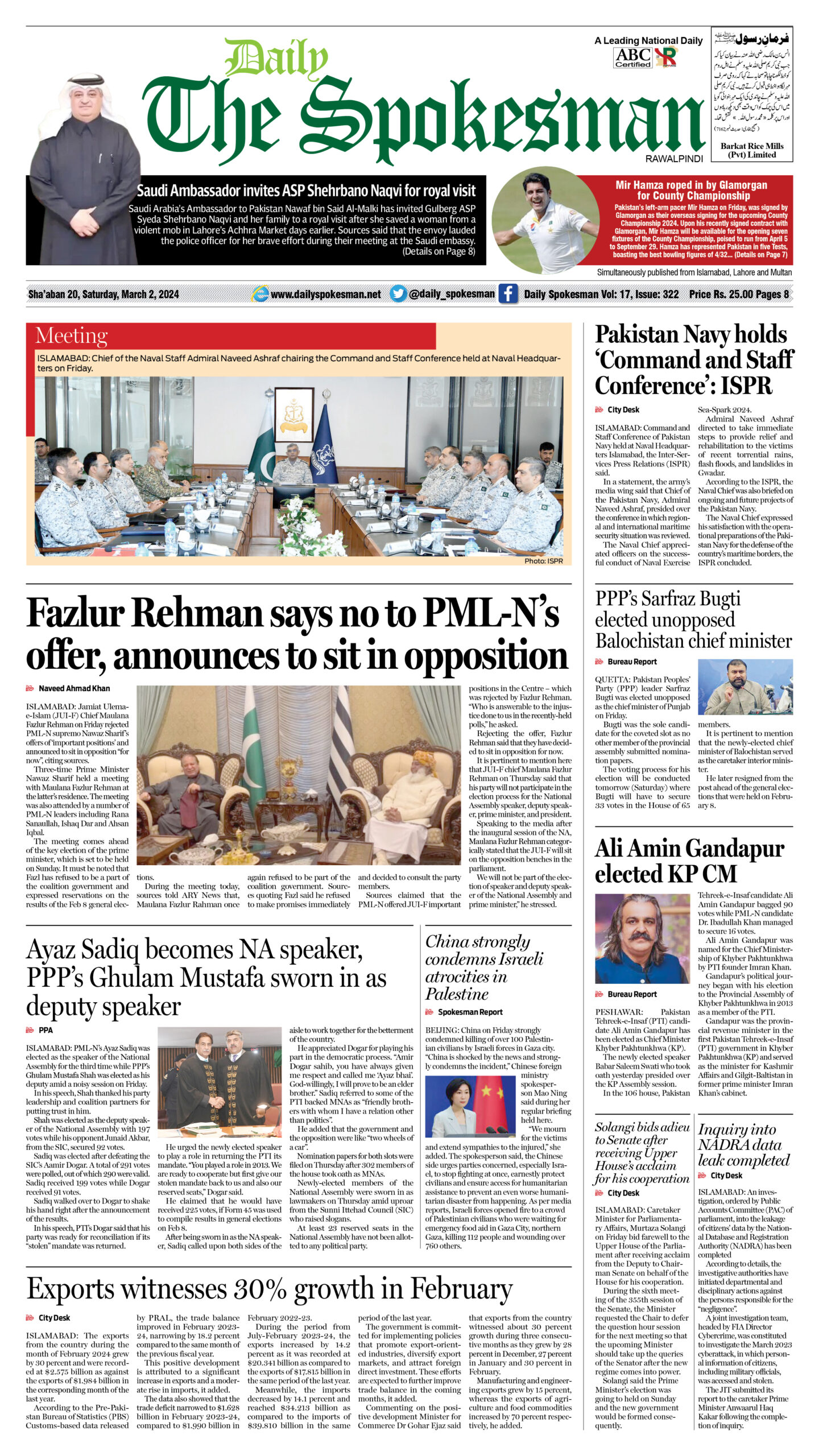 Uncategorized Daily The Spokesman March 02 2024 By News Desk - March 2, 2024 0 303 FacebookTwitterPinterestWhatsAppLinkedinEmailTelegram Booklet is empty or it doesn't exist.