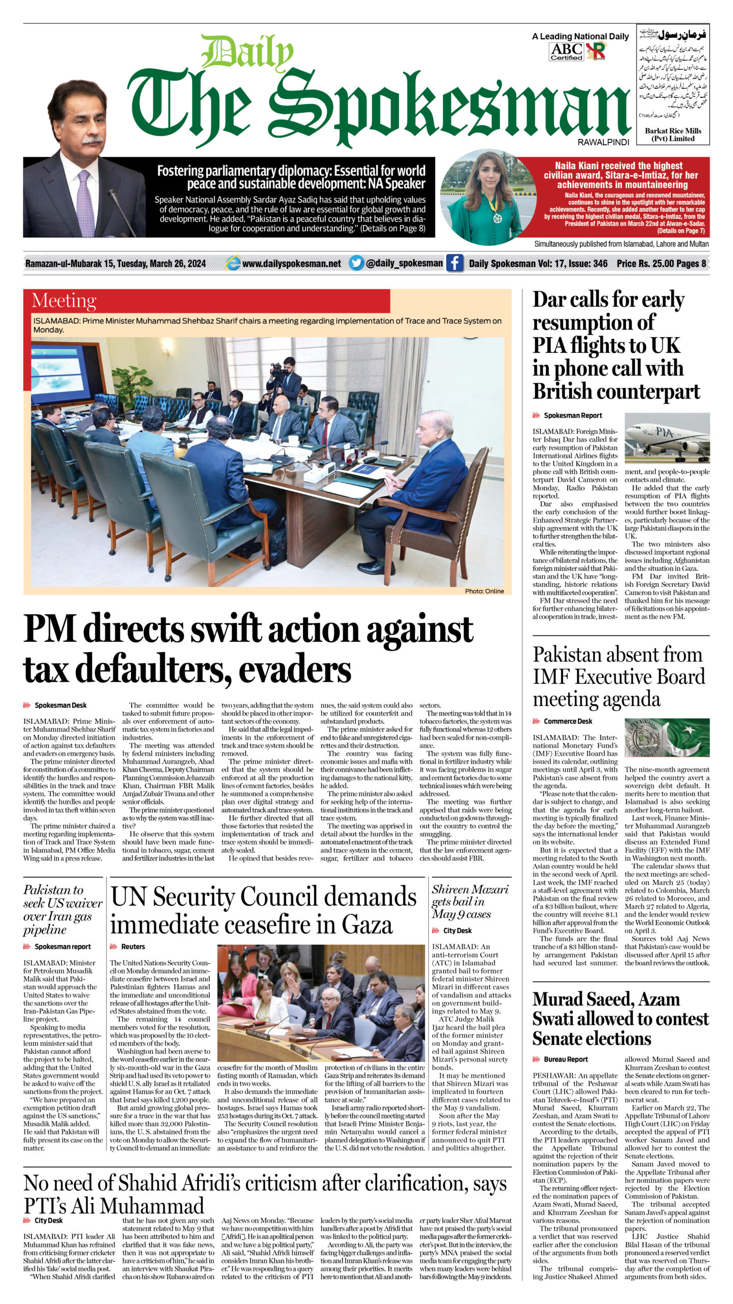 Uncategorized Daily The Spokesman March 26 2024 By News Desk - March 26, 2024 0 253 FacebookTwitterPinterestWhatsAppLinkedinEmailTelegram Booklet is empty or it doesn't exist.
