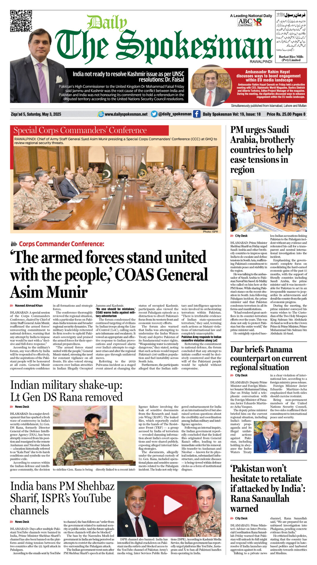 Daily The Spokesman PDF Daily The Spokesman May 03 2025 PDF By News Desk May 3, 2025 0 551 Share FacebookTwitterPinterestWhatsAppLinkedinEmailTelegram Must read Daily The Spokesman 17 December 2025 PDF December 17, 2025 Daily The Spokesman 16 December 2025 PDF December 16, 2025 Kenya marks 62nd Jamhuri Day in Islamabad, Reaffirms strong ties with Pakistan December 15, 2025 Daily The Spokesman 15 December 2025 PDF December 15, 2025 News Deskhttps://dailyspokesman.net/live Daily The Spokesman May 03 2025 PDF TagsDaily The Spokesman May 03 2025 PDF Share FacebookTwitterPinterestWhatsAppLinkedinEmailTelegram Previous articleUAE Ambassador Meets Prime Minister, Discusses Regional Peace and SecurityNext articleIndian aggression is backed by the U.S. - Advertisement - More articles Daily The Spokesman 17 December 2025 PDF December 17, 2025 Daily The Spokesman 16 December 2025 PDF December 16, 2025 Daily The Spokesman 15 December 2025 PDF December 15, 2025 - Advertisement - Latest article Daily The Spokesman 17 December 2025 PDF December 17, 2025 Daily The Spokesman 16 December 2025 PDF December 16, 2025 Kenya marks 62nd Jamhuri Day in Islamabad, Reaffirms strong ties with Pakistan December 15, 2025 Daily The Spokesman 15 December 2025 PDF December 15, 2025 Daily The Spokesman 14 December 2025 PDF December 14, 2025