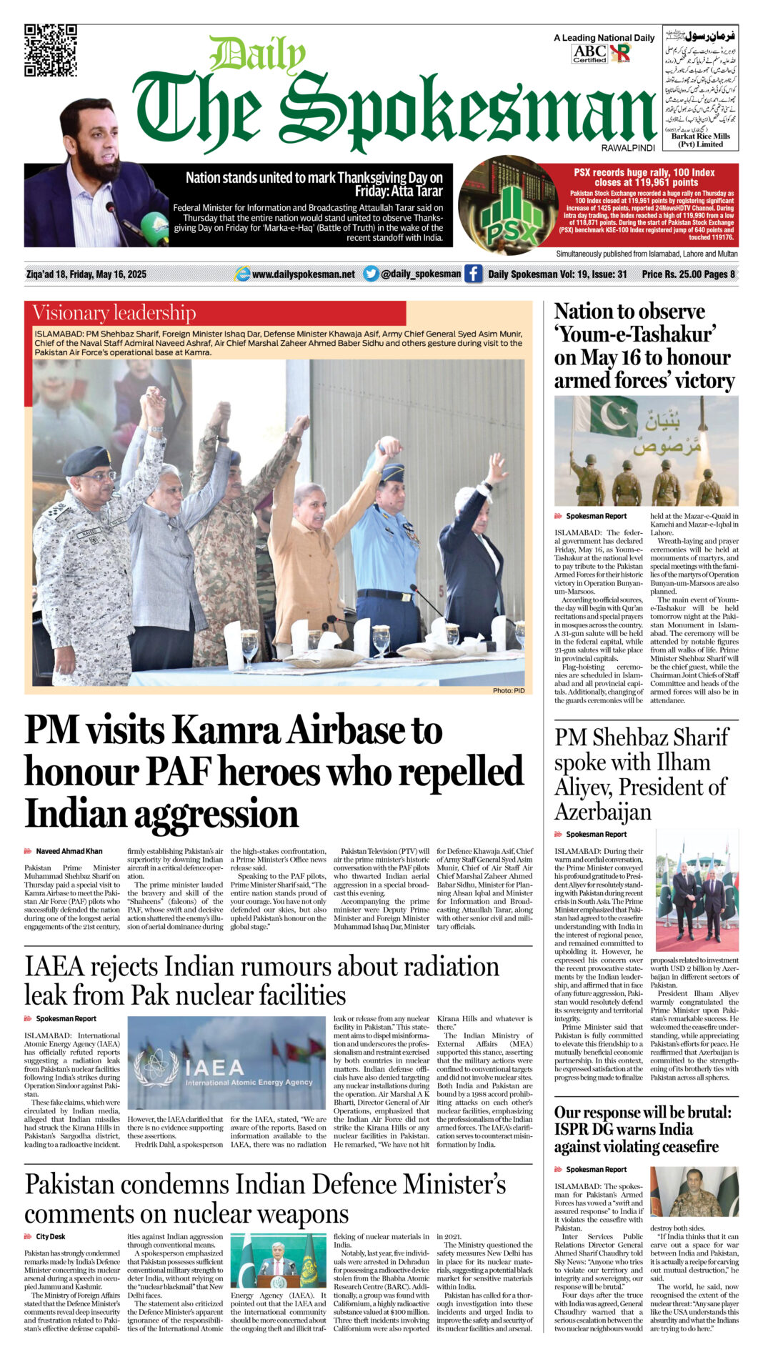 Daily The Spokesman PDF Daily The Spokesman May 16 2025 PDF By News Desk May 16, 2025 0 455 Share FacebookTwitterPinterestWhatsAppLinkedinEmailTelegram Must read Daily The Spokesman 17 December 2025 PDF December 17, 2025 Daily The Spokesman 16 December 2025 PDF December 16, 2025 Kenya marks 62nd Jamhuri Day in Islamabad, Reaffirms strong ties with Pakistan December 15, 2025 Daily The Spokesman 15 December 2025 PDF December 15, 2025 News Deskhttps://dailyspokesman.net/live Daily The Spokesman May 16 2025 PDF TagsDaily The Spokesman May 16 2025 PDF Share FacebookTwitterPinterestWhatsAppLinkedinEmailTelegram Previous articlePM visits Kamra Airbase to honour PAF heroes who repelled Indian aggressionNext articleUNDP and ILO partner for stronger human rights standards in Pakistan’s business sector - Advertisement - More articles Daily The Spokesman 17 December 2025 PDF December 17, 2025 Daily The Spokesman 16 December 2025 PDF December 16, 2025 Daily The Spokesman 15 December 2025 PDF December 15, 2025 - Advertisement - Latest article Daily The Spokesman 17 December 2025 PDF December 17, 2025 Daily The Spokesman 16 December 2025 PDF December 16, 2025 Kenya marks 62nd Jamhuri Day in Islamabad, Reaffirms strong ties with Pakistan December 15, 2025 Daily The Spokesman 15 December 2025 PDF December 15, 2025 Daily The Spokesman 14 December 2025 PDF December 14, 2025