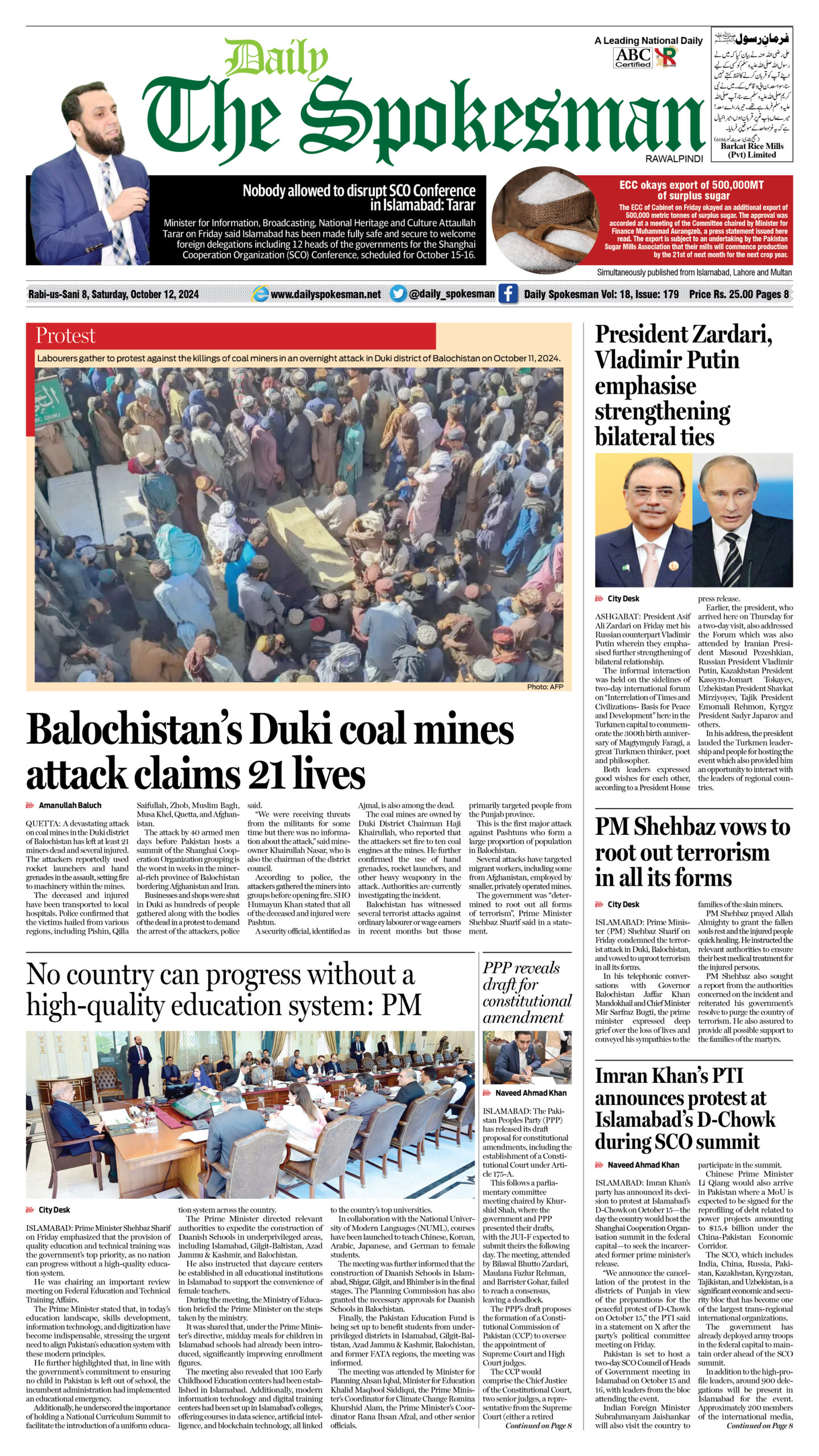 Daily The Spokesman PDF Daily The Spokesman October 12 2024 PDF By News Desk - October 12, 2024 0 463 FacebookTwitterPinterestWhatsAppLinkedinEmailTelegram Daily The Spokesman October 12 2024 PDF