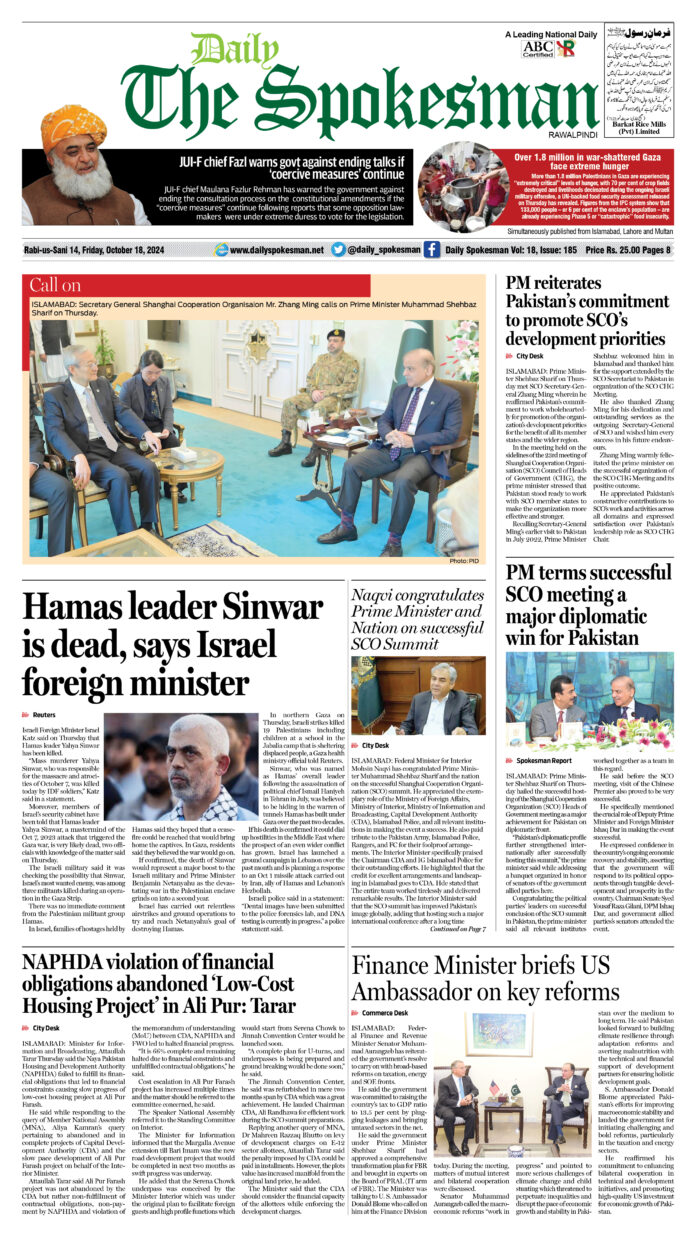 Daily The Spokesman PDF Daily The Spokesman October 18 2024 PDF By News Desk - October 18, 2024 0 395 FacebookTwitterPinterestWhatsAppLinkedinEmailTelegram Daily The Spokesman October 18 2024 PDF