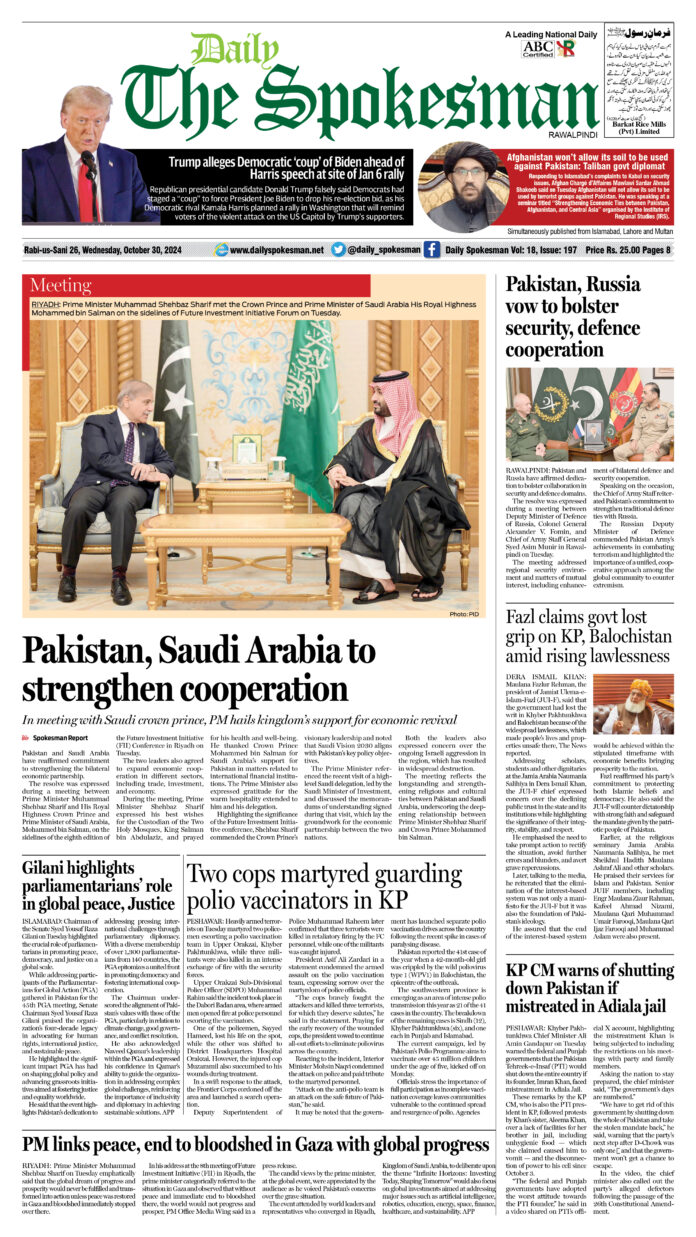 Daily The Spokesman PDF Daily The Spokesman October 30 2024 PDF By News Desk - October 31, 2024 0 309 FacebookTwitterPinterestWhatsAppLinkedinEmailTelegram Daily The Spokesman October 30 2024 PDF
