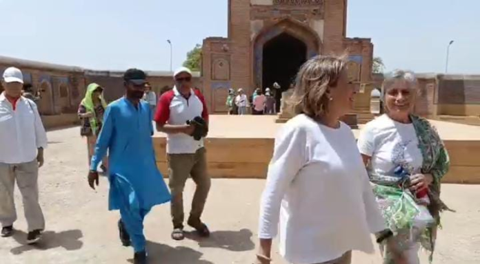 THATTA: A 37-member delegation of Spanish archeologists visited historical sites of Thatta on Sunday. They visited the historical Makli Necropolis and the Shah Jahan Mosque that was established in the 17th century in Thatta city by Mughal emperor Shah-Jahan. The visit was followed by a seminar where provincial minister for Culture Syed Zulfikar Ali Shah, spanish archeologists, MPA Syed Riaz Hussain Shah Shirazi, MNA Sadiq Ali Memon among others. Addressing the seminar noted archaeologist M.Thyman, who led the delegation said thatMakli Necropolis and other archeological sites of Sindh always offered a lot to work adding that soon that would commence a detailed research on the Makli necropolis and other sites of Sindh. He praised the hospitality and collaboration extended by the provincial government. Provincial minister for culture and Archaeology Zulfikar Shah said that most of the archeologists were professors at Madrest Colsthery University of Spain with an especial interest in the field of archeology. He further said that if Moen-Jo-Daro airport was made functional the opportunities of tourism would enhance in Sindh. “I have asked the team of archeologists to visit Bhmphore and other historical sites of Sindh”; the minister said adding that such visits would portray a positive image of Pakistan to the world. Briefing the historical significance of Makli Khalid, Chchcar said that the necropolis had been placed in the ranks of world heritage sites in 1985 since then tourists from across the world had been visiting the site to write articles and research papers. He further mentioned that the culture department was highly concerned about preservation and maintenance of the site in a way to keep its historical status intact. The team of archaeologists interacted with local historians to seek in-depth knowledge about the mausoleums of different rulers particularly Jam-Nizamuddin the ruler of Samma dynasty. The archaeologists took snaps of the mausoleums from different angles and noted key points regarding the history of Makli that would be made part of their research articles. The visit of the delegation started from Moen=Jo-Daro and culminated at Makli necropolis