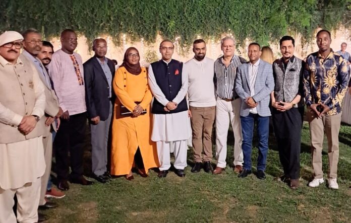 Ambassadors of Rwanda, Kenya, Somalia, Zimbabwe, Sri Lanka, Sudan, Uzbekistan, and Ethiopia, together with the President of the Rawalpindi Chamber of Commerce and Industry (RCCI), the Chief Executive Officer of Pak Observer, and distinguished guests from London and Uganda, posed for a group photograph during a dinner hosted by Additional Foreign Secretary Ambassador Hamid Asghar.