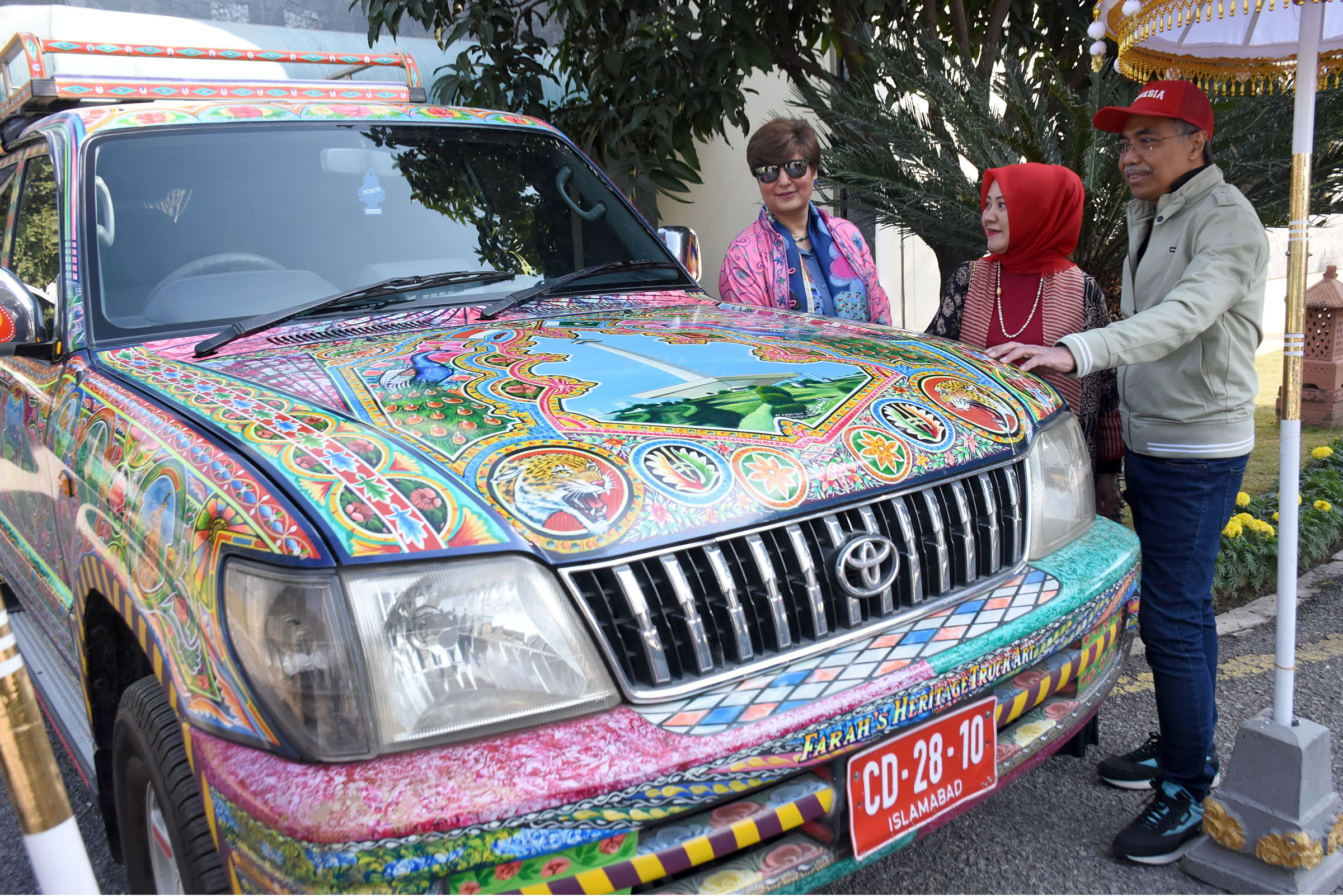 The event also displayed the envoy’s truck arts painted official car. The car is decorated with famous cultural landmarks of Indonesia and Pakistan.