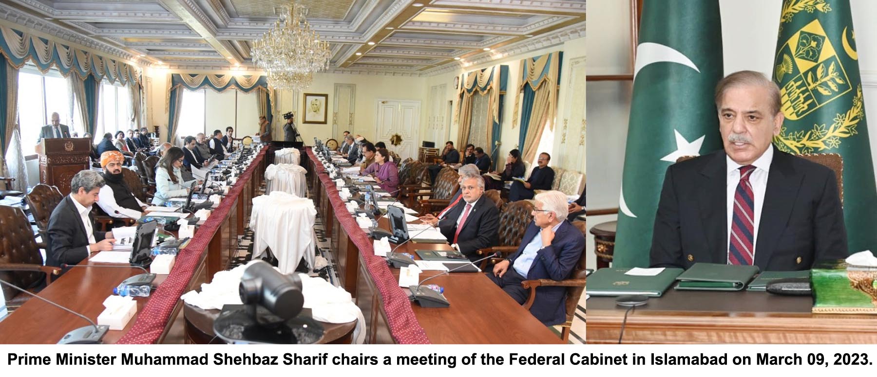 Prime Minister Muhammad Shehbaz Sharif chairs a meeting of the Federal Cabinet in Islamabad on March 09, 2023.