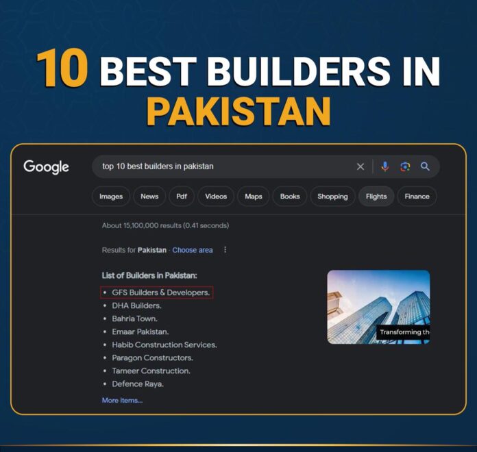 KARACHI – GFS Builders and Developers is a sign of trust. GFS Builders lead in the google ranking, leaving all the builders behind. GFS is at top of the list of Google in Pakistan.